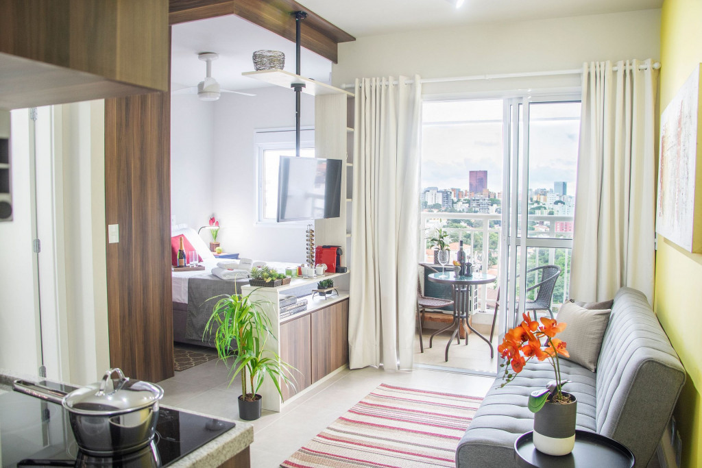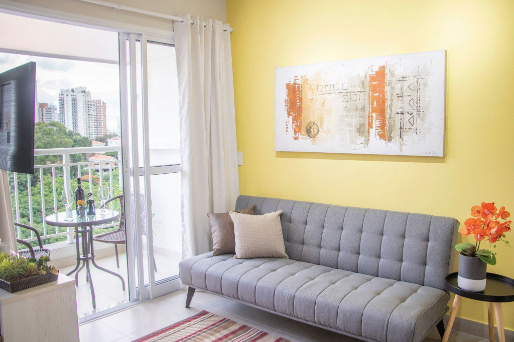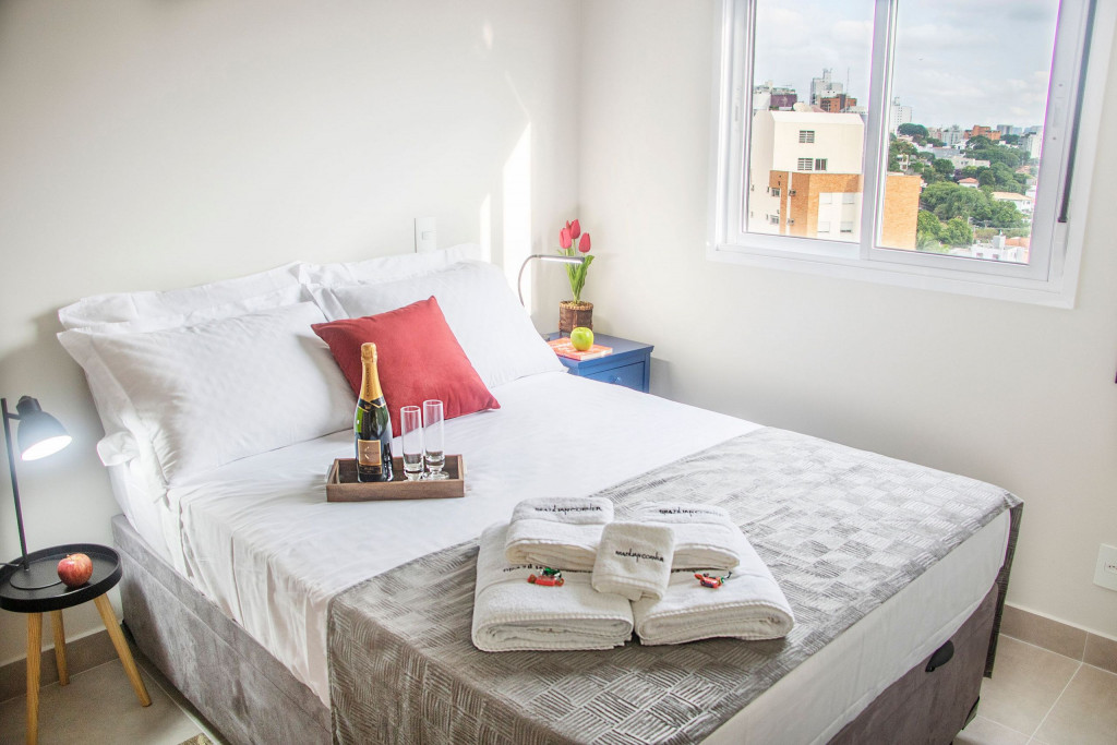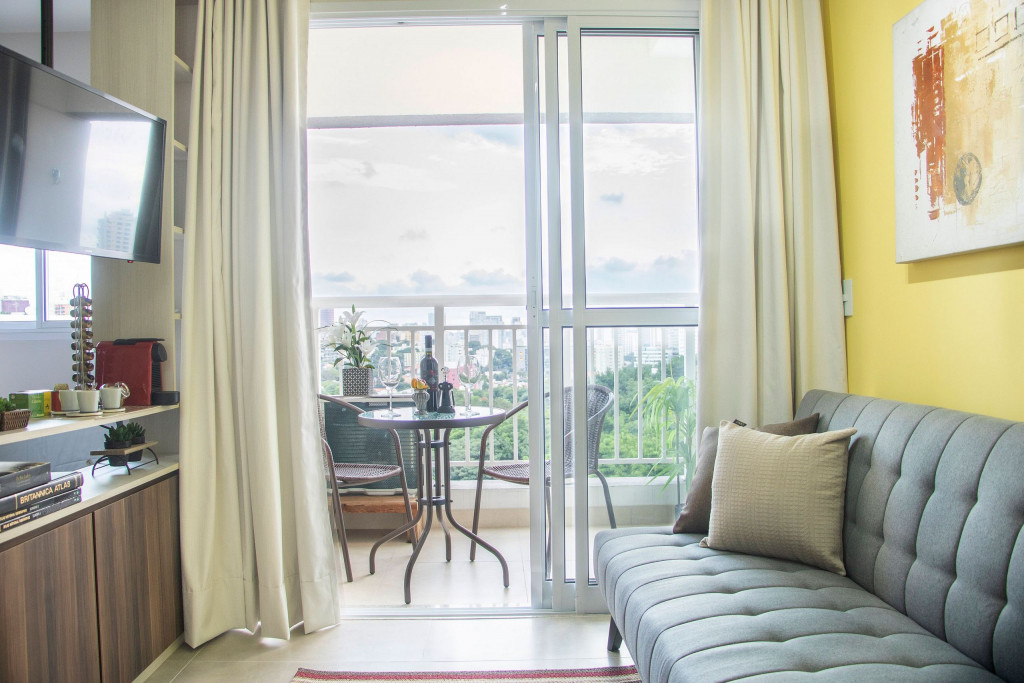 O apartamento entregue em Janeiro de 2020 é muito bem equipado. Ele tem uma área de 30m2 e fica no bairro Vila Madalena, um dos mais culturais bairros de São Paulo. O prédio conta com comodidades como piscina, academia, lavanderia comunitária e vaga na garagem. É localizado à apenas 12 minutos caminhando do metrô, 1 minuto de um grande supermercado e próximo de farmácia e padaria. O apartamento fica em um andar alto, com uma bela vista, e tem ar condicionado trazendo maior conforto.
