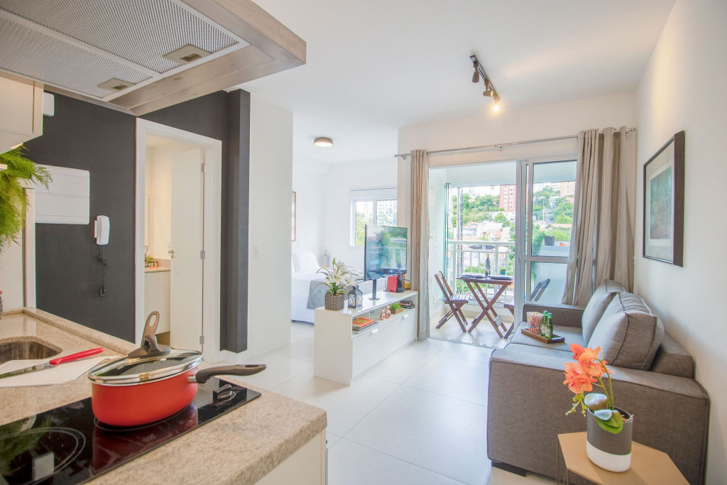 Apartamento moderno localizado na Vila Madalena, a apenas 12 minutos a pé da estação de metrô. Situado em um bairro nobre e cultural. Ele oferece o espaço ideal para uma estadia na cidade de São Paulo. Conta com SmartTV com Netflix, cortina blackout, sofá-cama, cofre digital, internet ultra veloz, cozinha completa. O banheiro possui um secador de cabelo e chuveiro a gás. O prédio disponibiliza piscina, lavanderia, academia e vaga na garagem.