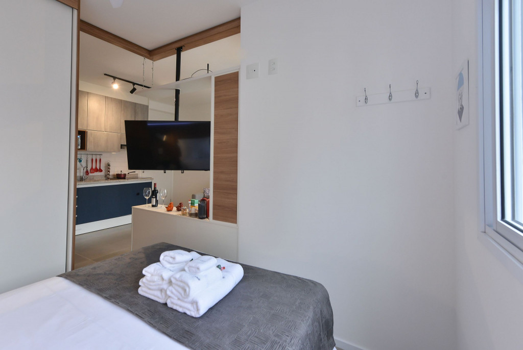 Apartamento moderno localizado na Vila Madalena, a apenas 12 minutos a pé da estação de metrô. Situado em um bairro nobre e cultural. Ele oferece o espaço ideal para uma estadia na cidade de São Paulo. Conta com Smart TV com Netflix, cortina blackout, sofá-cama na sala, cofre e fechadura digital, internet ultra veloz, varanda com cadeira e mesa e cozinha completa. O banheiro possui um secador de cabelo e chuveiro a gás. O prédio disponibiliza piscina, lavanderia, academia e vaga na garagem.