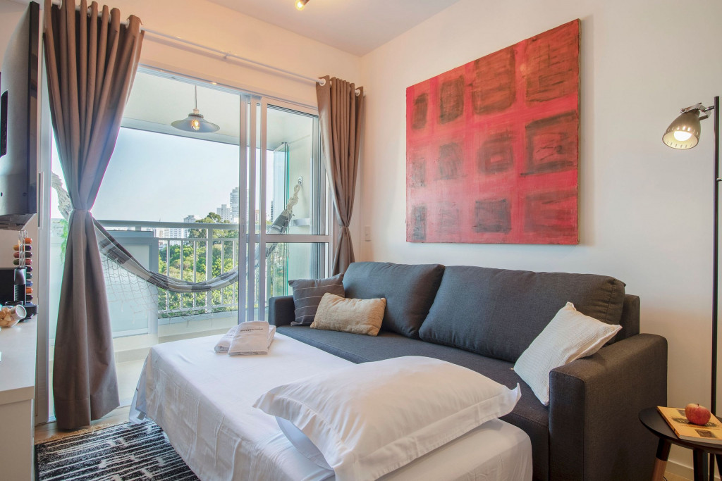 Apartamento moderno localizado na Vila Madalena, a apenas 12 minutos a pé da estação de metrô. Situado em um bairro nobre e cultural. Ele oferece o espaço ideal para uma estadia na cidade de São Paulo. Conta com SmartTV, AC, cortina blackout, rede de descanso na varanda, mesa de jantar para duas pessoas, sofá-cama, cofre digital, internet ultra veloz, cozinha completa. O banheiro possui um secador de cabelo e chuveiro a gás. O prédio disponibiliza piscina, lavanderia, academia e vaga na garagem.