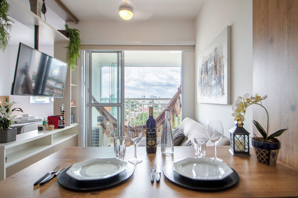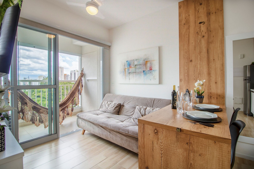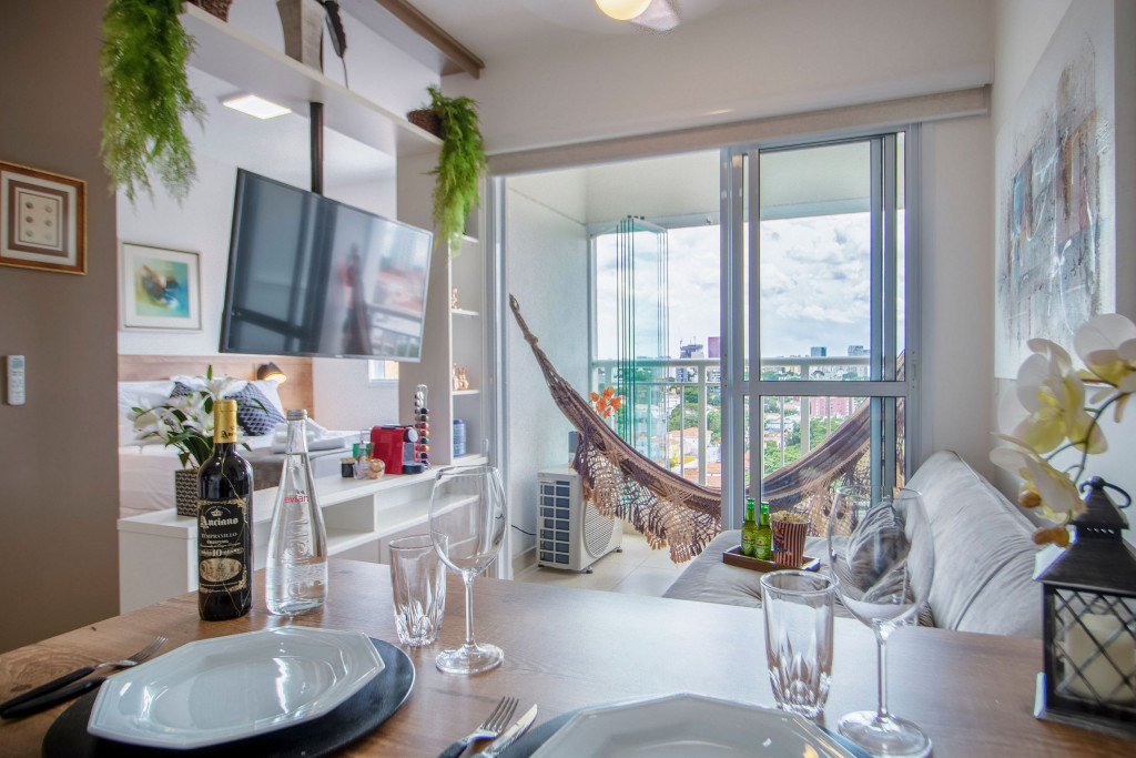 - Varanda integrada com vista incrível: Desfrute de uma paisagem deslumbrante que vai deixar você sem palavras. Imagine acordar todas as manhãs e contemplar de sua varanda a beleza da cidade de São Paulo que nos cerca. Além de contar com rede de descanso.