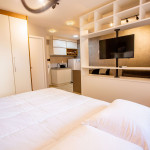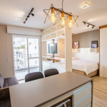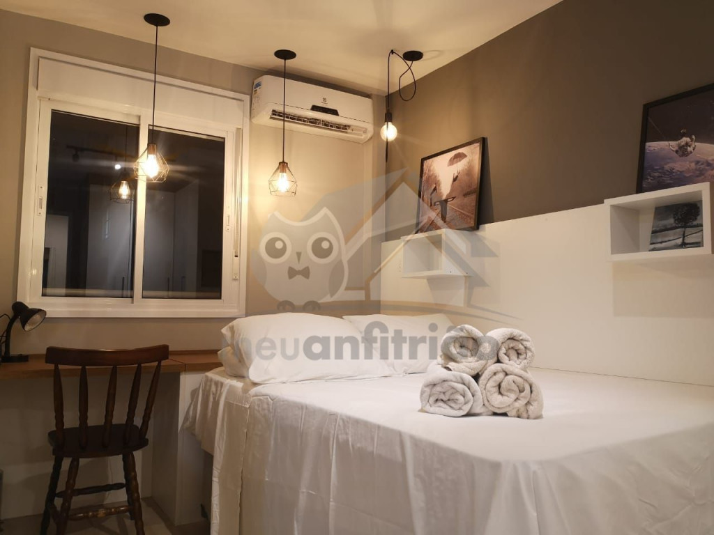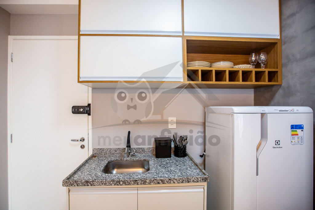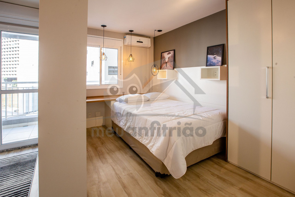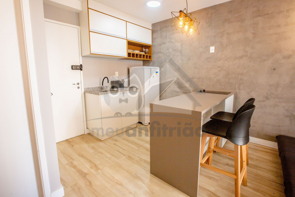 O Studio Republic, acomoda de maneira confortável até 3 pessoas, sendo: 2 pessoas em cama de casal e 1 pessoa em sofá-cama.Ao entrar no studio, à esquerda é possível encontrar uma cozinha completa com todos os utensílios e eletrodomésticos necessários para a estadia: fogão, micro-ondas, geladeira, cafeteira, copos, talheres, taças, panelas e muito mais.A cozinha é aberta e possui um balcão com duas baquetas para a sala. O local possui TV rotativa onde é possível focá-la tanto para o quarto quanto para a sala. Da sala, é possível acessar uma ampla e agradável varanda.Na área do quarto, há uma escrivaninha com cadeira para quem precisar fazer home office. Também oferecemos WI-FI de alta velocidade e ar-condicionado (quente e frio).O condomínio dispõe de bicicletário, recepção, academia moderna, mercadinho 24h e piscina com vista da cidade.