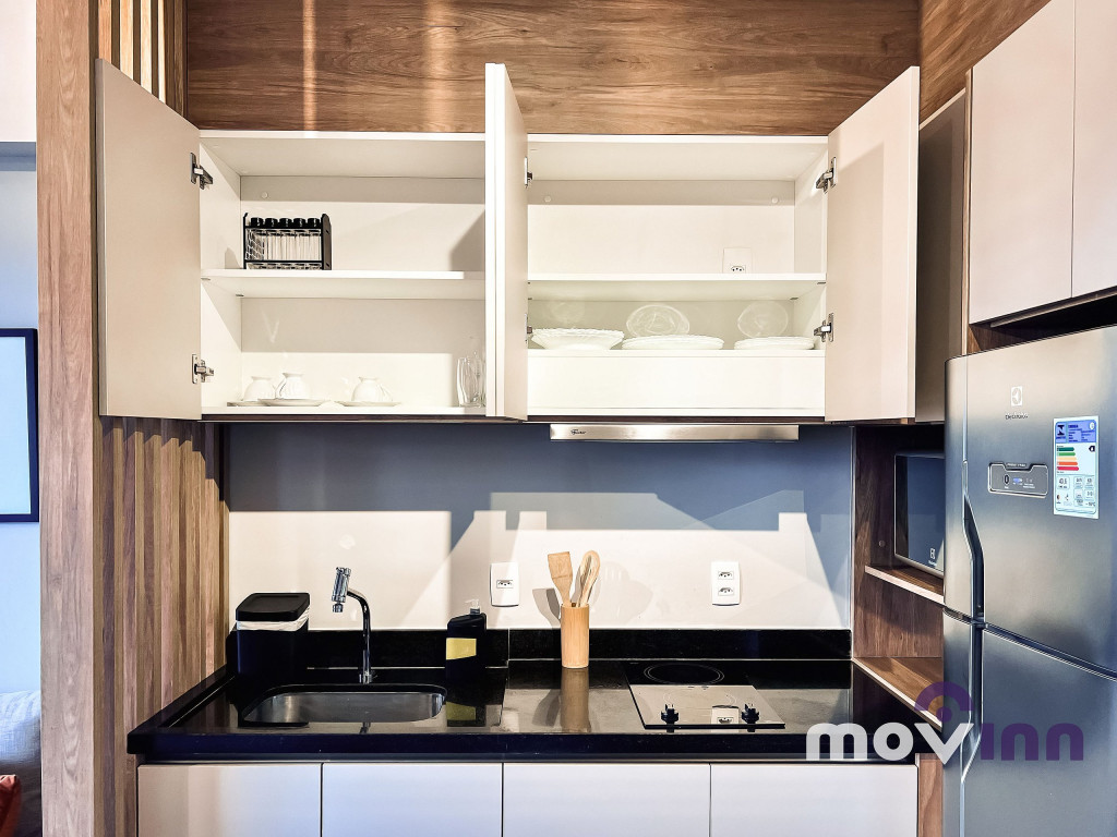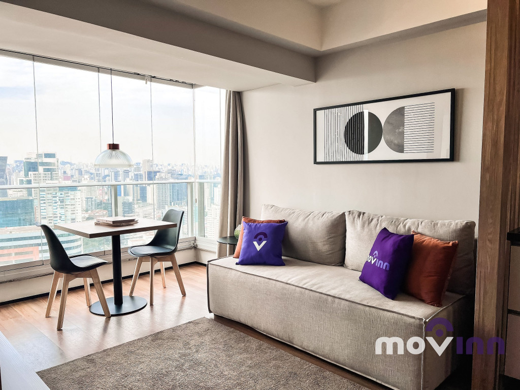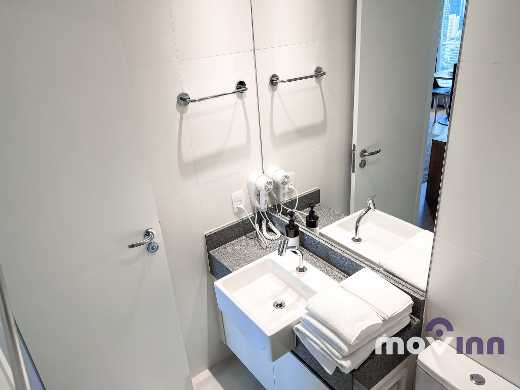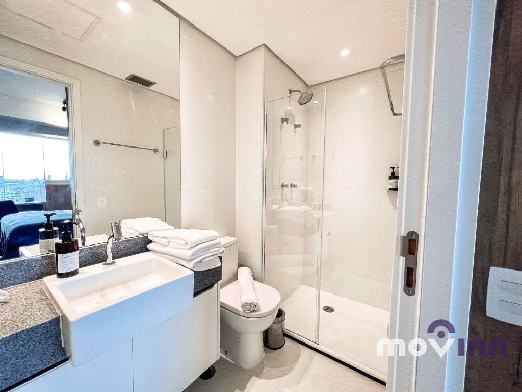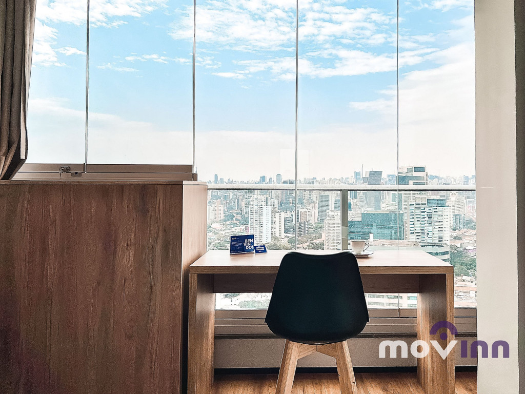 O Studio conta com 37m² muito bem distribuídos. Mobiliado com cama queen size, sala completa, com smart tv, cozinha equipada com cooktop, exaustor, geladeira, forno elétrico, micro-ondas, cafeteira nespresso, além de uma ótima estação para trabalho. Não oferecemos a troca de lençóis e toalhas. Recomendamos pendurar as toalhas após o uso para mantê-las secas até o próximo banho. Caso precise de troca de enxoval cobramos uma taxa adicional e, para tal, é necessário agendamento prévio com a MOVINN. Para o acesso do hóspede ao condomínio, é necessário enviar alguns documentos que serão solicitados após a confirmação de sua reserva como, por exemplo, cópia de documento oficial emitido pelo governo de seu país, com foto de todos os hóspedes. Durante sua estadia, toda e qualquer pessoa que precise receber no apartamento, terá seu acesso autorizado se estiver previamente avisado (com nome completo e número do documento de identidade). O horário de check-in é a partir das 15:00 horas e o check-out deve ser feito impreterivelmente até às 12:00 horas da manhã. Somos PET Friendly, aceitamos mediante a pagamento de taxa.