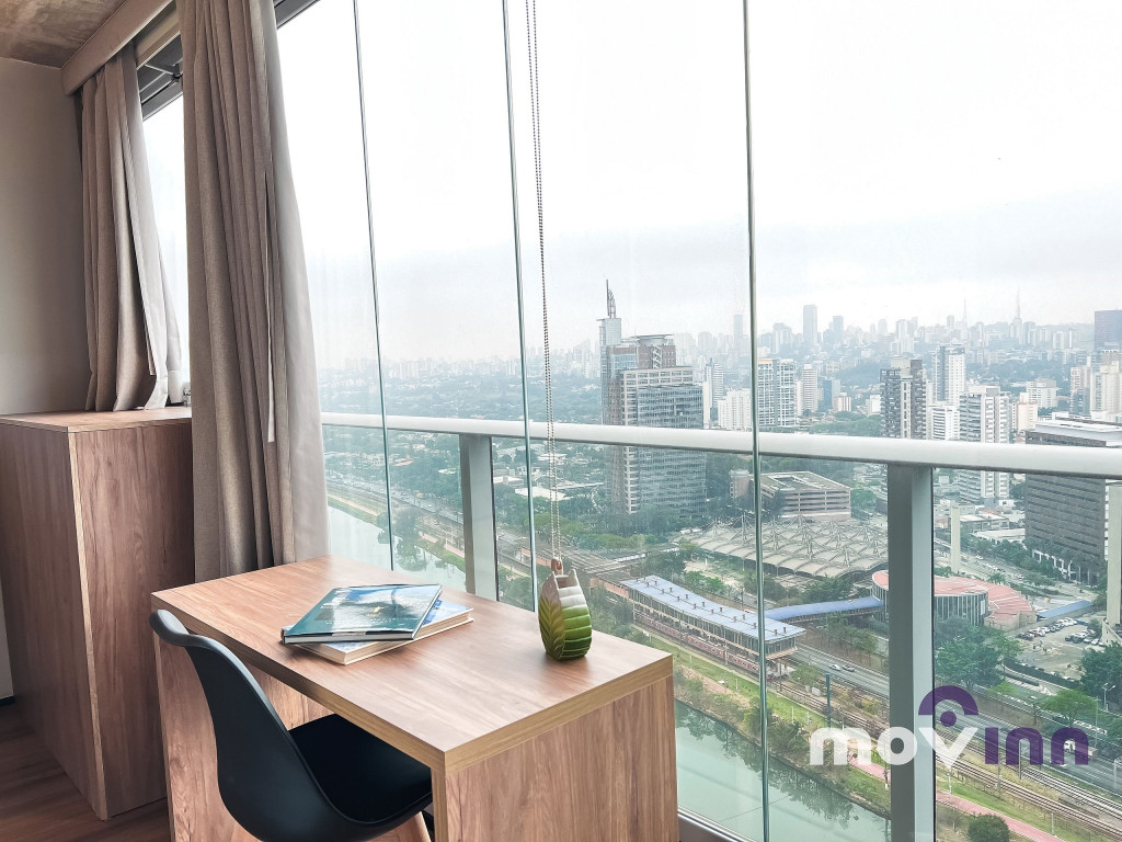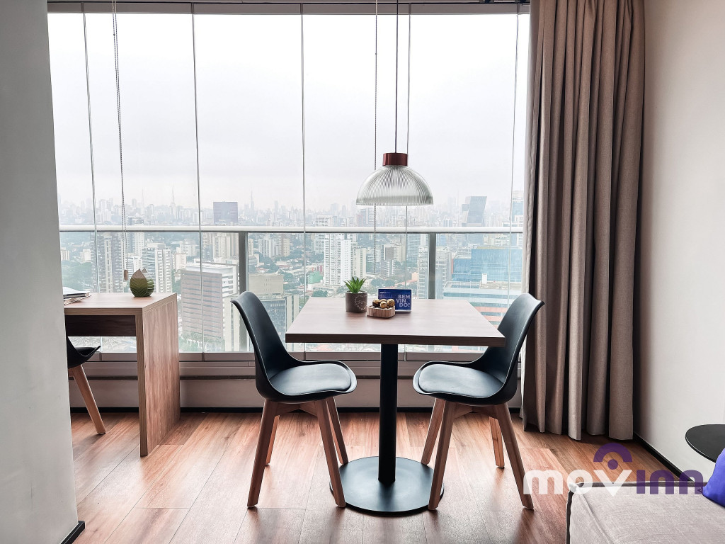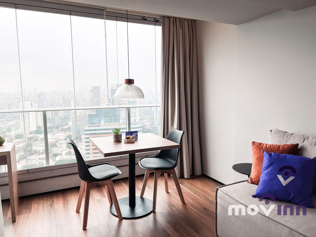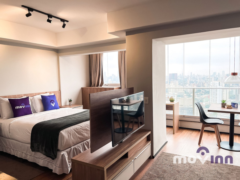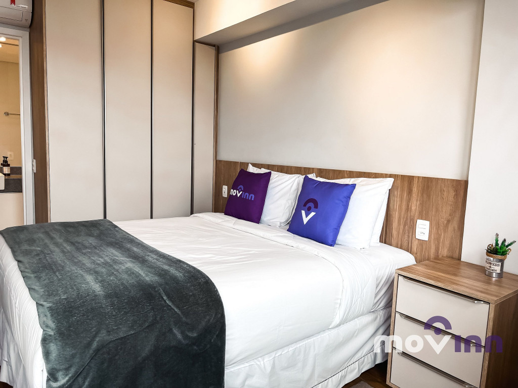 O Studio conta com 37m² muito bem distribuídos. Mobiliado com cama queen size, sala completa, com smart tv, cozinha equipada com cooktop, exaustor, geladeira, forno elétrico, micro-ondas, cafeteira nespresso, além de uma ótima estação para trabalho. Não oferecemos a troca de lençóis e toalhas. Recomendamos pendurar as toalhas após o uso para mantê-las secas até o próximo banho. Caso precise de troca de enxoval cobramos uma taxa adicional e, para tal, é necessário agendamento prévio com a MOVINN. Para o acesso do hóspede ao condomínio, é necessário enviar alguns documentos que serão solicitados após a confirmação de sua reserva como, por exemplo, cópia de documento oficial emitido pelo governo de seu país, com foto de todos os hóspedes. Durante sua estadia, toda e qualquer pessoa que precise receber no apartamento, terá seu acesso autorizado se estiver previamente avisado (com nome completo e número do documento de identidade). O horário de check-in é a partir das 15:00 horas e o check-out deve ser feito impreterivelmente até às 12:00 horas da manhã. Somos PET Friendly, aceitamos mediante a pagamento de taxa.