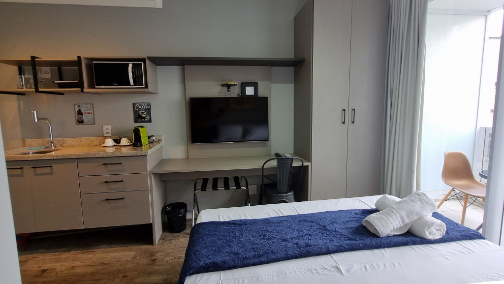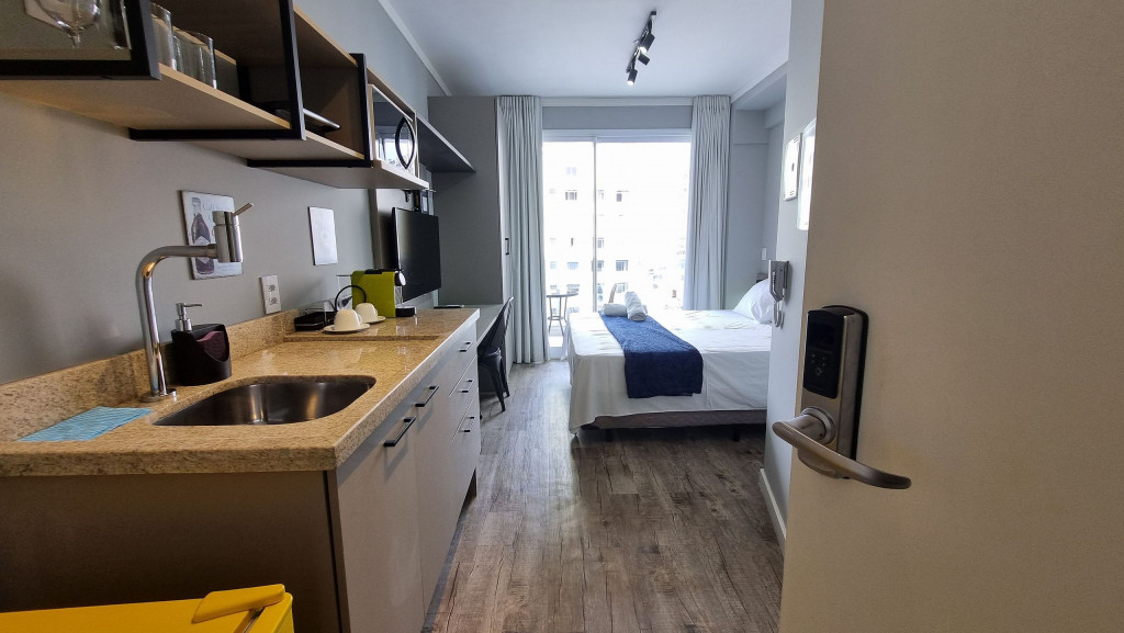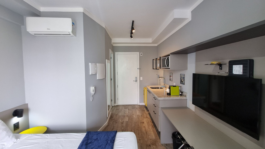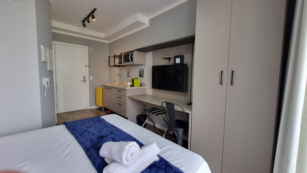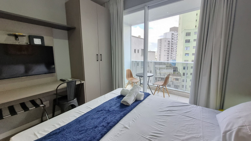 Studio com decoração premium pensado para curtas estadias. Perfeito para casais, pessoas viajando sozinhas a lazer/trabalho. Estrutura para até 2 pessoas. Apê a 400 metros da estação da Sé. Farmácia, padaria, mercados a um passo de distância, além de estar muito bem localizado no centro da cidade com facilidade para todos os lugares via metrô.