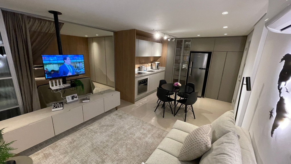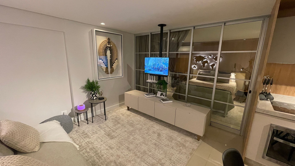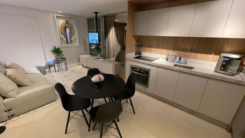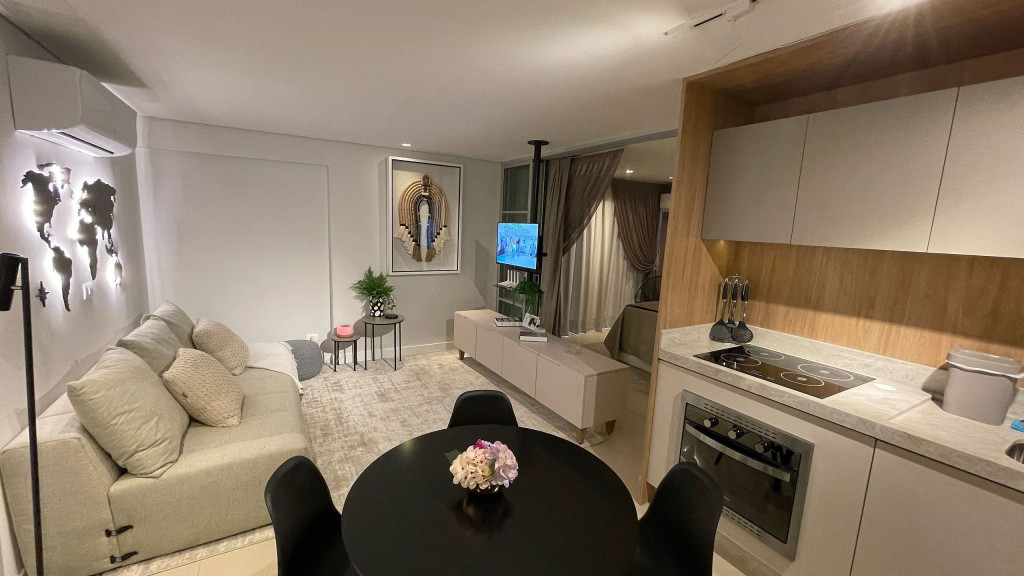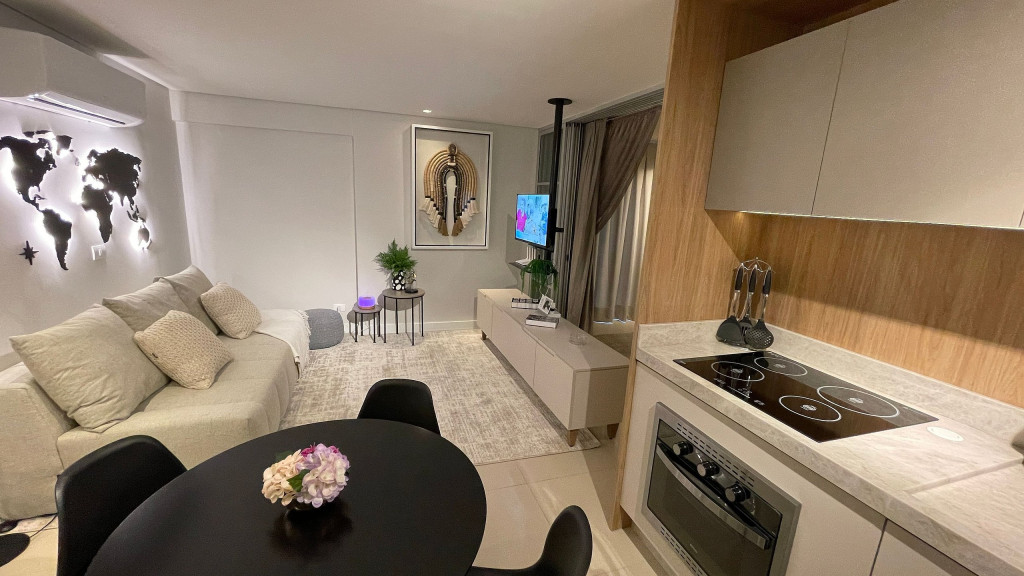 Sua localização possibilita acesso rápido e fácil aos principais pontos turísticos da cidade por meio de transporte público, dentre outros. O espaço conta com: - - 01 quarto com cama casal e armários; - 01 sala com sofá cama CONFORTÁVEL para até 02 adultos; - Cozinha básica para uma boa hospedagem; - Wi-fi de 150mb. Equipamentos: - Ar condicionado no quarto e na sala; - Geladeira, fogão 4 bocas de indução (elétrico), micro-ondas, cafeteira, chaleira, , depurador de ar; - TV Smart, com sinal locais abertos e NETFLIX; - Enxoval de cama e banho; - Enxoval de cozinha com taças de vinho, jogo de panelas em inox , jogo de jantar e café completo, jogo de talheres e demais utensílios; - Mantimentos mínimos como pó de café, açúcar e sal; Infraestrutura do condomínio: -Lavanderia com lava roupas e secadoras (serviço pago a parte - consultar previamente); -Portaria com acesso por botton eletrônico; -Acesso ao apartamento com fechadura digital através de senha a ser cadastrada; O atendimento aos hóspedes será sempre que necessário e solicitado. Check-in flexível a partir das 15h e Checkout até às 10h. O apartamento está a 220 metros da avenida Jorge Schimmelpfeng, conhecida como Avenida Gastronômica e que também dá acesso às principais avenidas da cidade. Nela, estão diversas opções gastronômicas tais como: choperias, petiscarias, comida japonesa, steak house, frutos do mar, massas etc. E um pouco mais distante, a cerca de 1,2 km, temos o Zeppelin Old Bar, que combina boa música e boa comida, e quase em frente, para quem curte chopp artesanal, tem o Eden Steak Garden e Chopperia. E ainda conta com uma padaria bem ao lado do prédio. Acesso ao transporte público a uma quadra, inclusive para a Argentina e Paraguai.