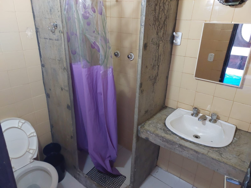 Suíte com quarto e banheiro a 9 minutos de carro da Praia do Forte. Localizada ao lado da Rua dos Biquinis, fica a 1 km do Centro de Cabo Frio. Há cama casal, duas camas de solteiro, geladeira, forno micro-ondas, ar condicionado, ventilador e TV. Há Wi-Fi disponível e estacionamento incluso no valor da hospedagem. Tem duas piscinas (uma de adulto e outra de criança). Comporta 4 pessoas. Não fornecemos roupa de cama, banho e nem produtos de higiene pessoal. Alugamos estes itens no local.