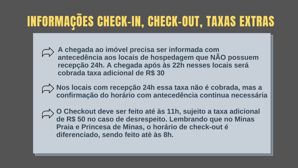 O check-in se inicia a partir das 14 horas. Se o apartamento ficar limpo antes, não tem problema em entrar mais cedo. Agora, caso queira chegar mais cedo e já entrar direto no imóvel é necessário alugar a diária do dia anterior mediante disponibilidade.