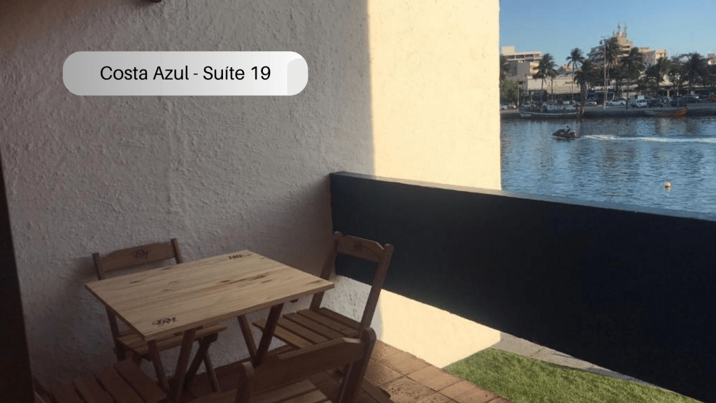 As suítes de número impar tem vista para o canal de Itajuru. As suítes de número par ficam nos fundos.