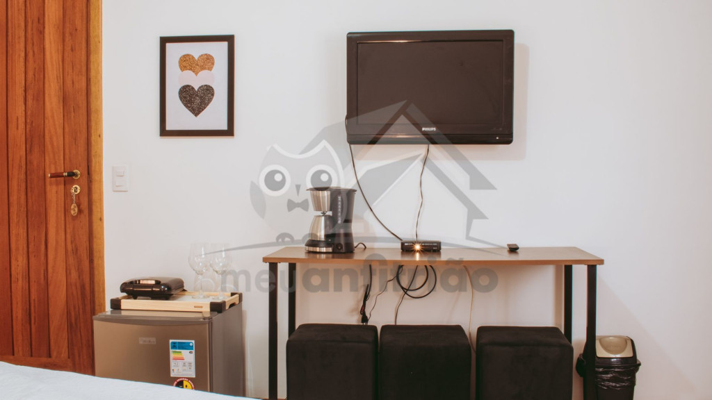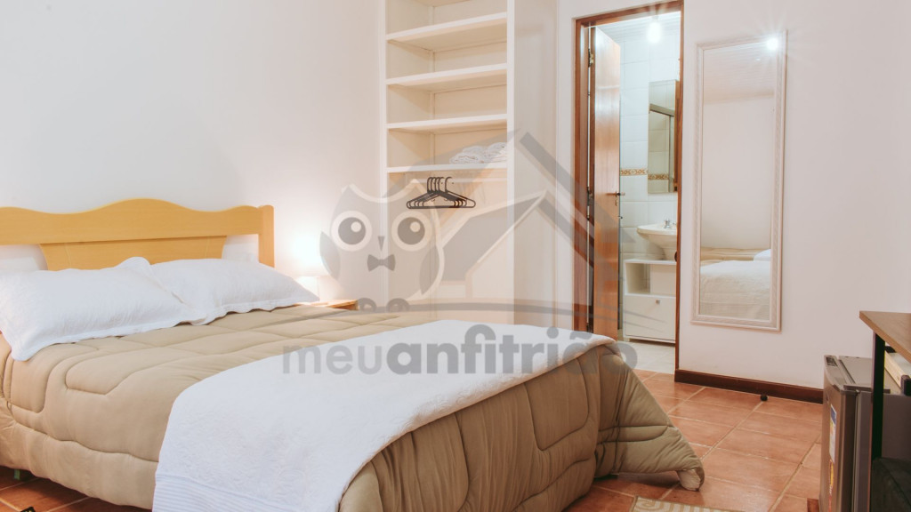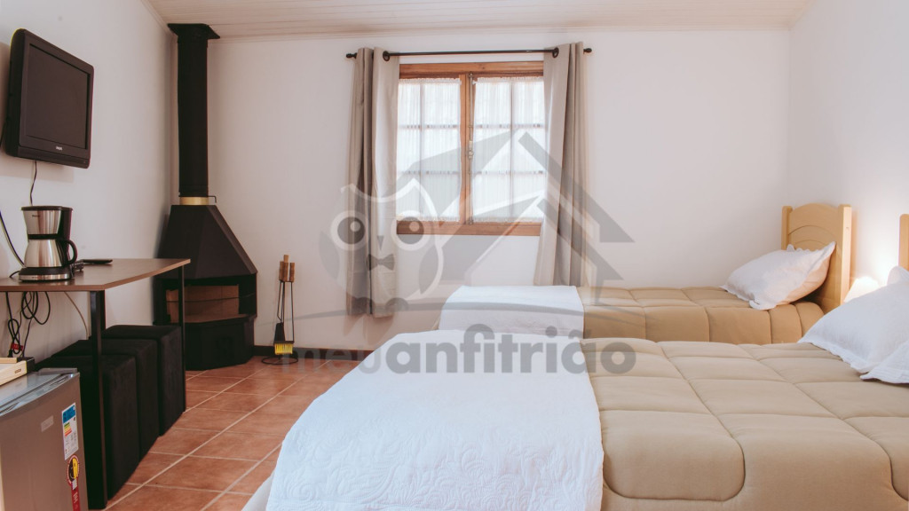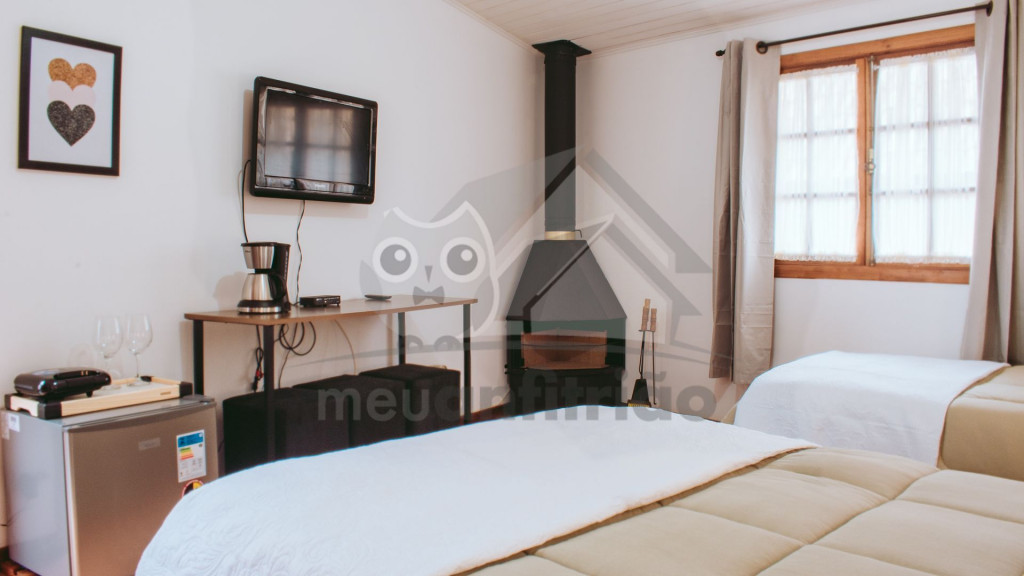 O espaço contém banheiro privativo, lareira, TV 32'', internet, mesinha para pequenas refeições, frigobar, cafeteira e sanduicheira.