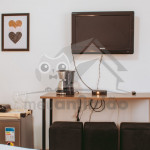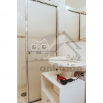 Além disso, aos fundos da suíte, saindo pela porta da entrada e virando à esquerda é possível encontrar uma pequena cozinha compartilhada com a Suíte 1. Lá estão disponíveis fogão, geladeira, micro-ondas e utensílios domésticos para pequenas refeições como pratos, talheres, panela e copos.