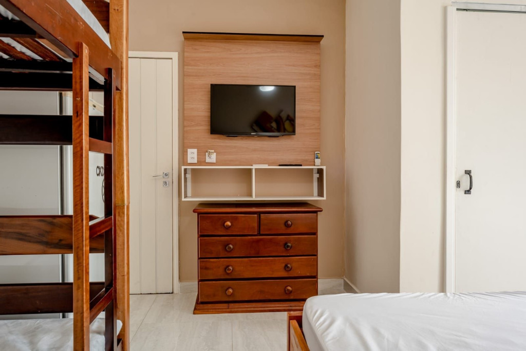 Todas com ar condicionado, TV smart e banheiro privativo.