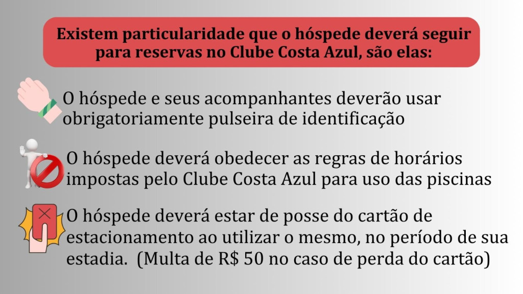 Todos os hóspedes precisam utilizar uma pulseira de identificação para ter acesso ao imóvel.