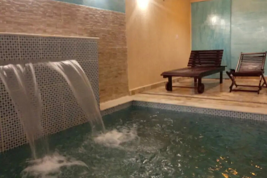 Temos uma piscina ?com hidromassagem que acaba de ser construída.