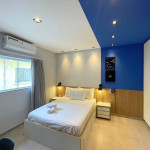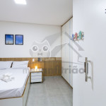 A propriedade possui 140m² com 6 suítes que compartilham uma área comum (cozinha, lavanderia lavabo e lobby).