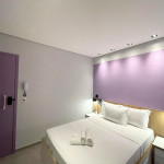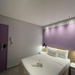 Nossa suíte de 10,18m2 acomoda confortavelmente até 2 pessoas em uma cama de casal.
