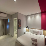 Nossa suíte de 10.79m2 acomoda confortavelmente até 2 pessoas em uma cama de casal.