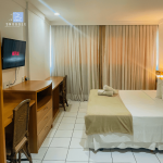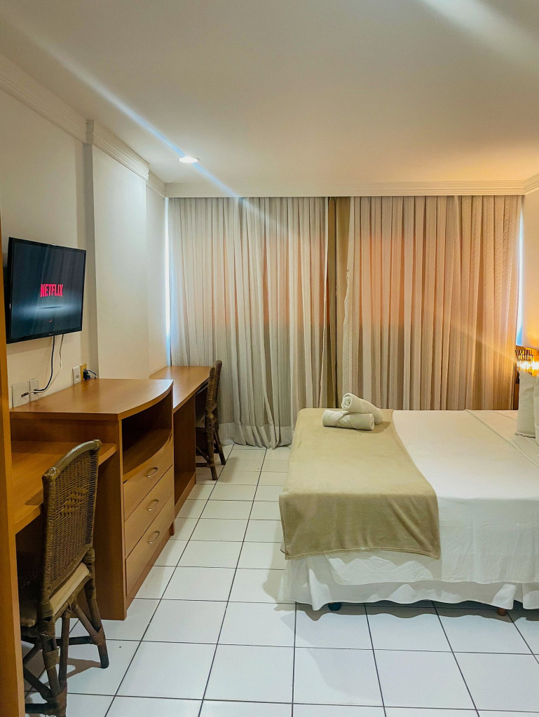 Conte com uma acomodação confortável e equipada, com ar-condicionado, utensílios, piscina, restaurante e agência de turismo dentro das dependências do hotel. Ideal para turismo e para viagens a trabalho, além do conforto da suíte e da vista encantadora do mar e do Morro do Careca, Cartão postal de Natal.