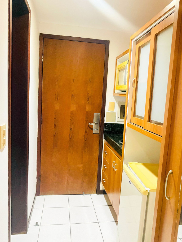 - Equipada com wi-fi, ar condicionado, televisão, micro-ondas, frigobar, cafeteira, liquidificador, torradeira, louças e talheres para refeições e serviços de quarto com trocas de toalhas.