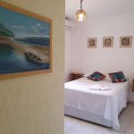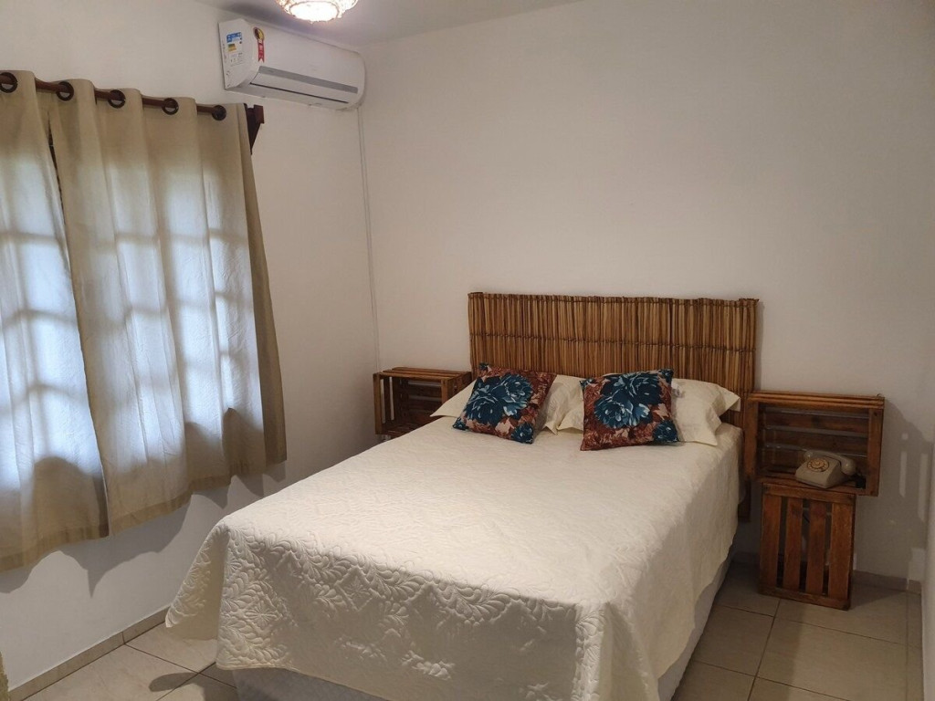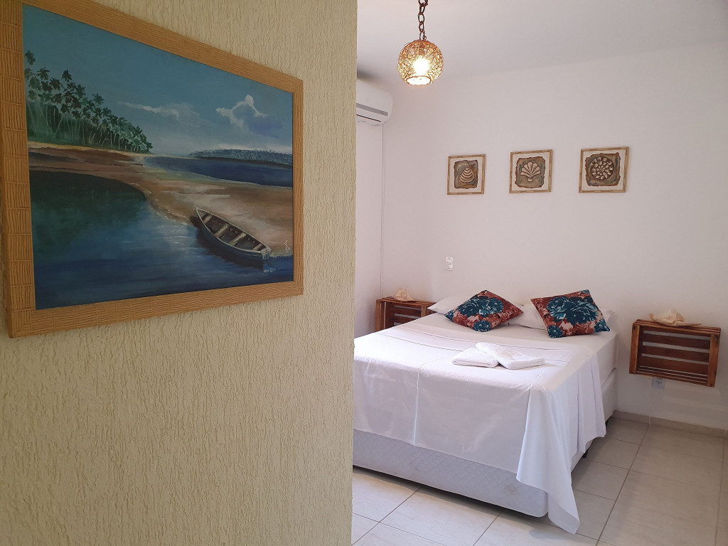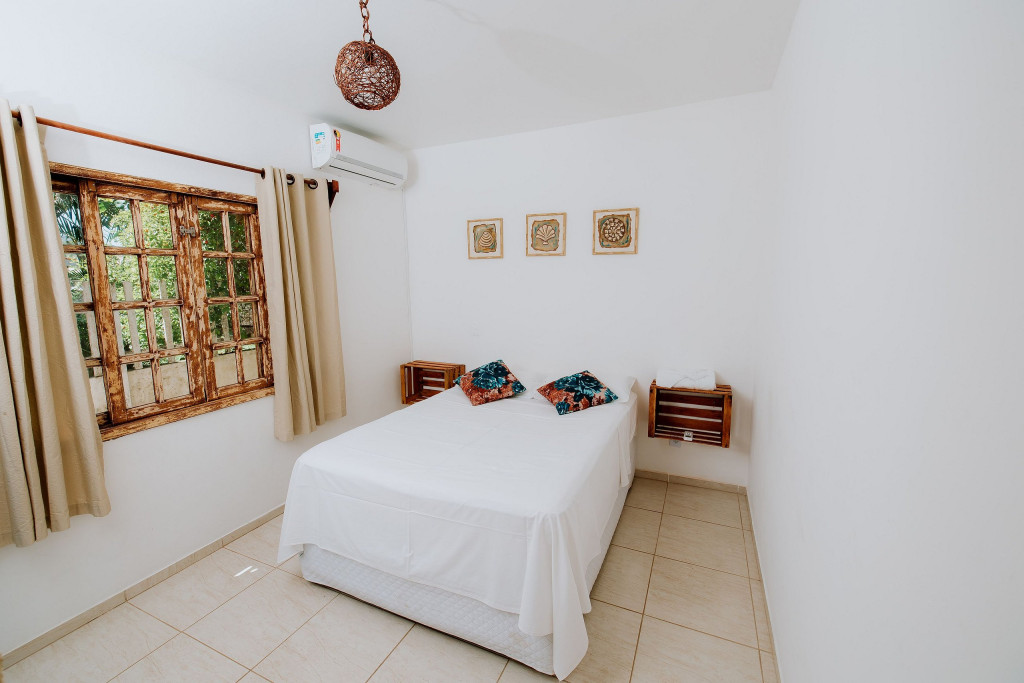Essa suíte confortável acomoda 2 pessoas em cama de casal, possui ar-condicionado, frigobar, tv e banheiro privativo. É super aconchegante e faz parte da Pousada Aratuca, uma pousada de ambiente familiar e tranquilo, com poucas acomodações à apenas 200 metros da Praia Grande. A Pousada possui estrutura ampla com cozinha equipada disponível para os hóspedes, churrasqueira, área de lazer externa com piscina, ducha externa, sala de estar com livros e jogos, coworking e um salão de eventos.