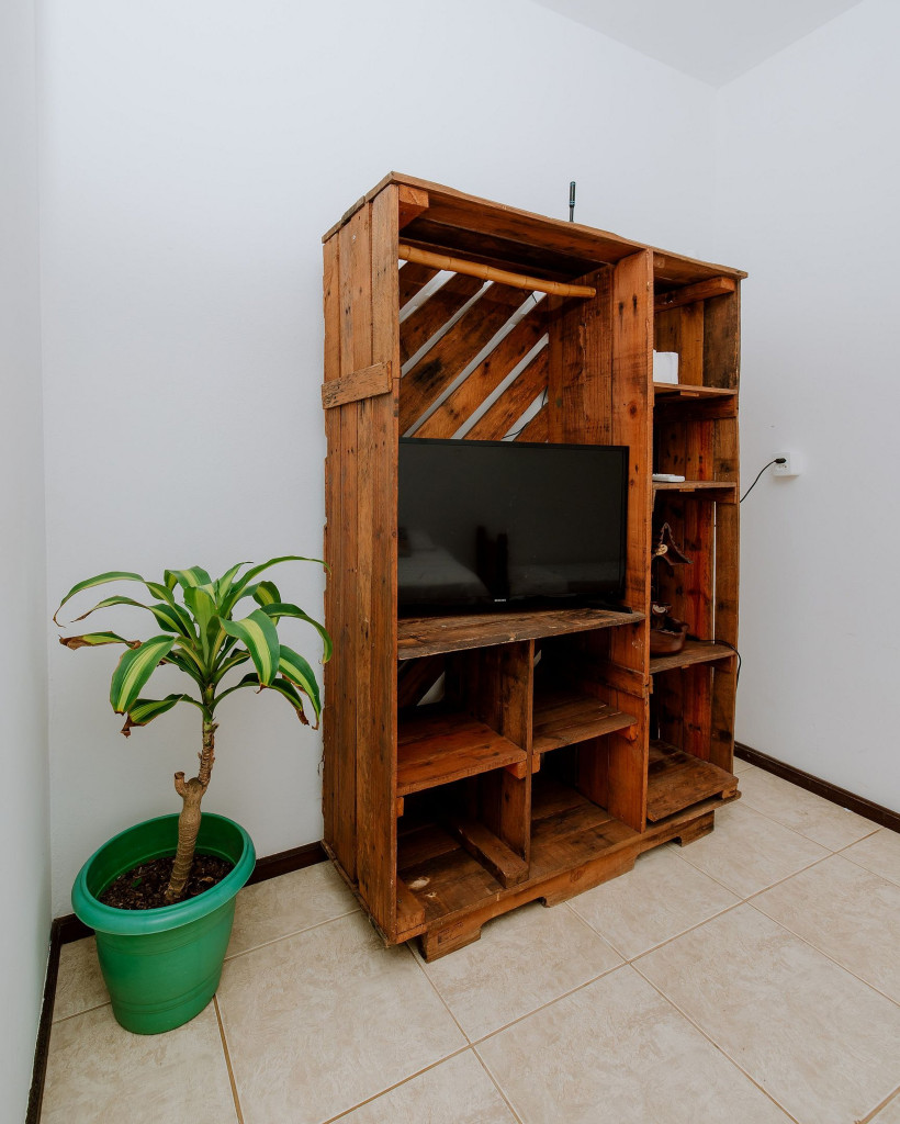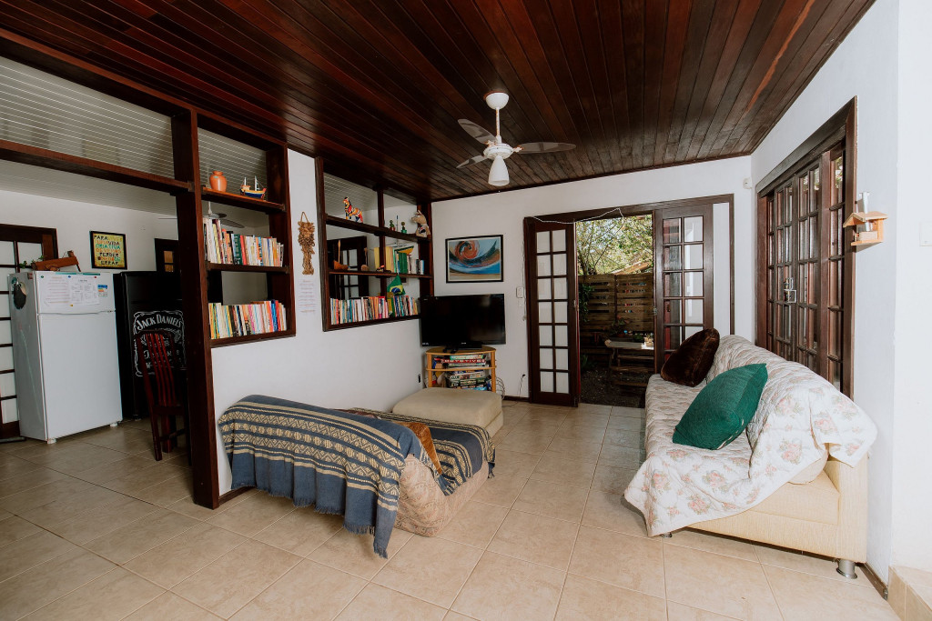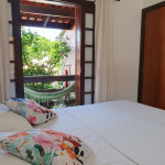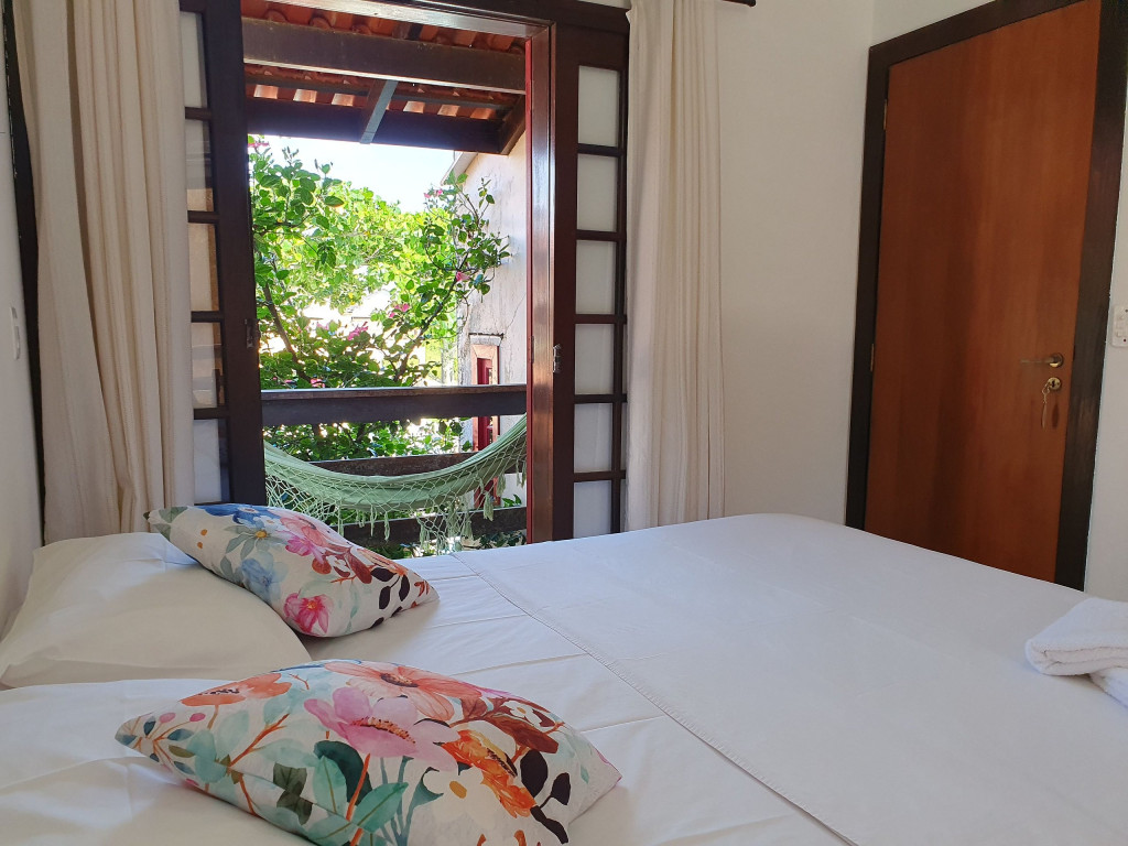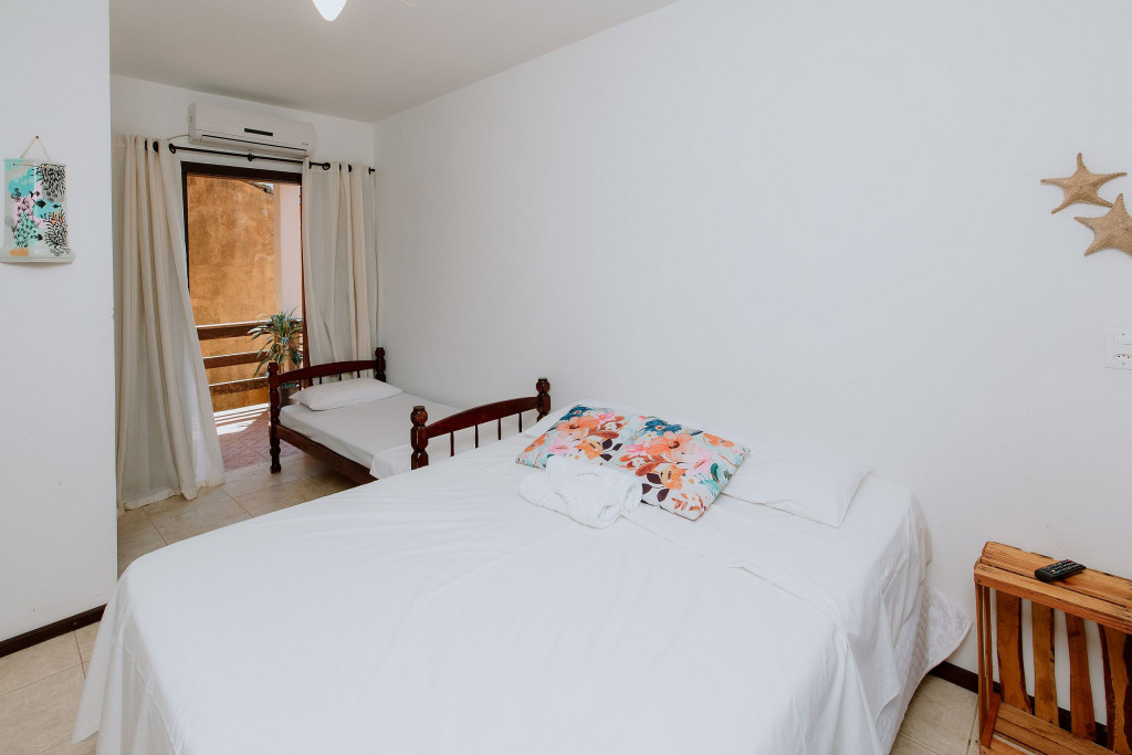 Essa aconchegante suíte com 2 sacadas, faz parte da pousada Casa Aratuca, que está situada a apenas 200mt da Praia Grande. A casa possui em sua estrutura ampla cozinha coletiva, churrasqueira, piscina, ducha externa, coworking, sala de leitura e jogos, sala de vivências. A região traz conforto e tranquilidade, bem perto da Prainha (10 minutos a pé) e da Enseada (15 minutos a pé), onde tem os maiores agitos com o famoso surf da Prainha, bares, festas, restaurantes e lojinhas.