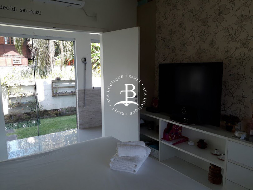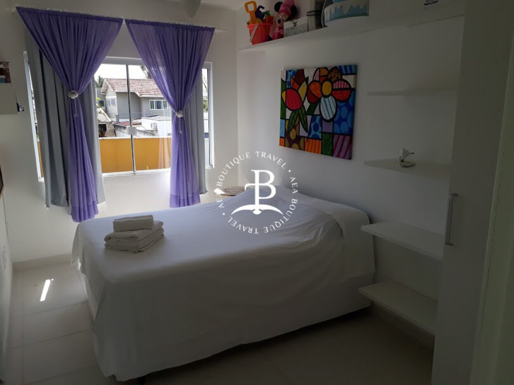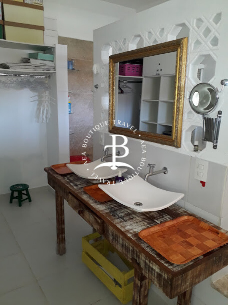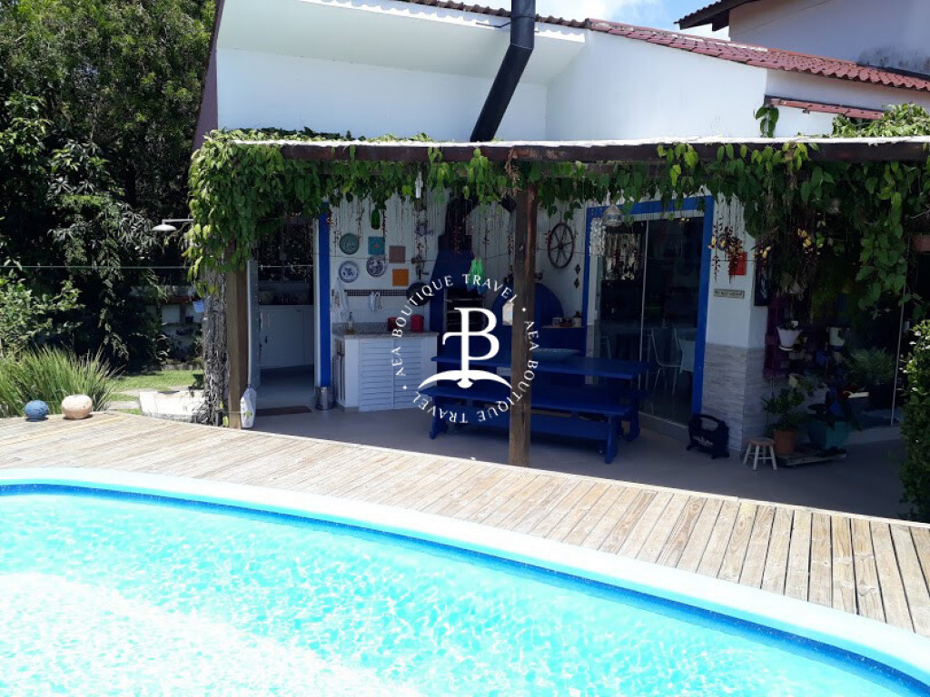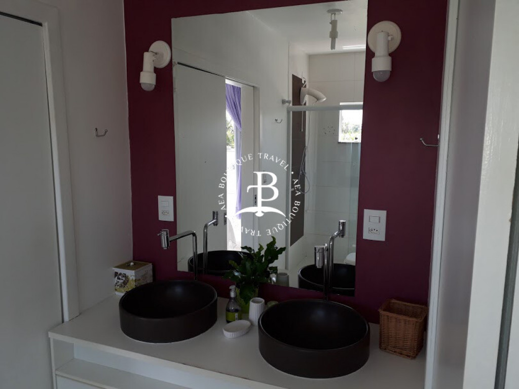 Aqui, cada detalhe da casa foi idealizado para proporcionar uma inesquecível experiência de conforto e beleza, num clima cuidadosamente despojado, que une a atmosfera praiana com o máximo do bom gosto, em seus ambientes que promovem o bem-estar e a integração entre os hóspedes. O amplo living room com sofá cama é integrado com a sala de jantar e uma cozinha completa, que se abrem para uma deliciosa varanda com espaço gourmet que inclui churrasqueira e piscina privativa.
