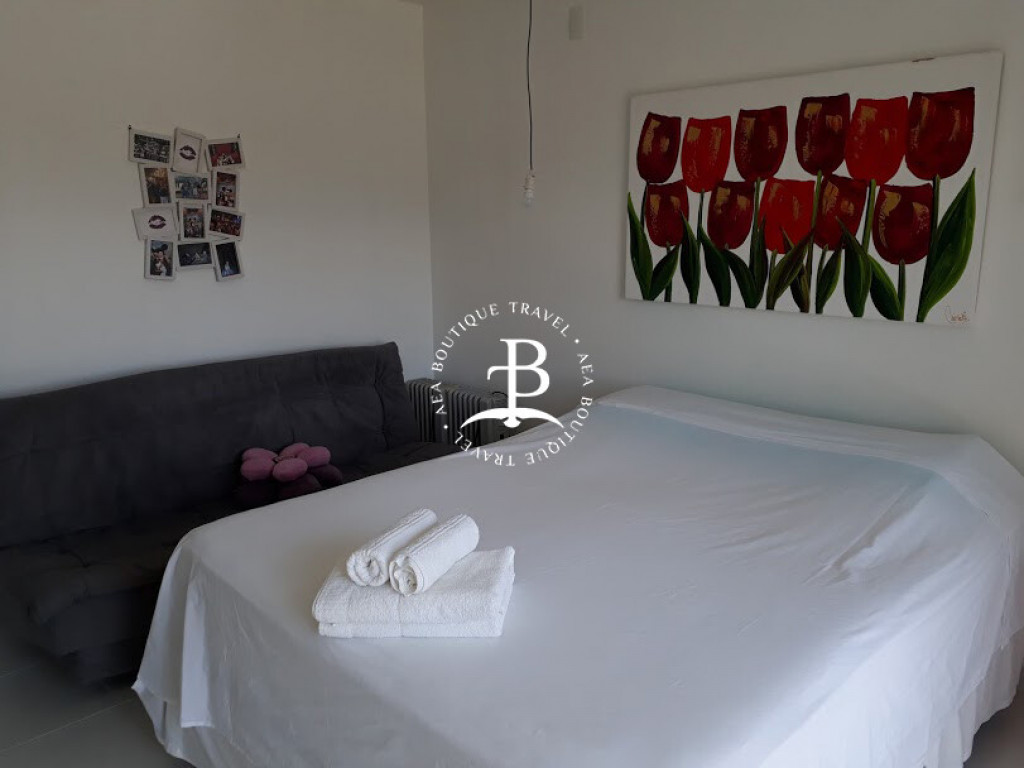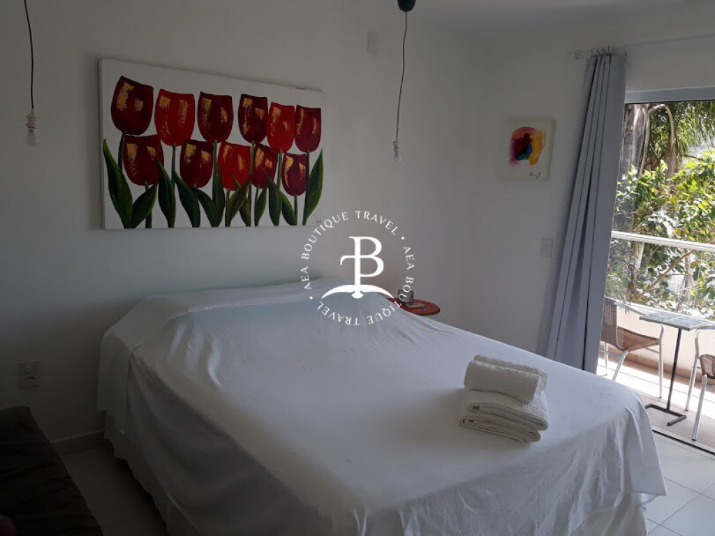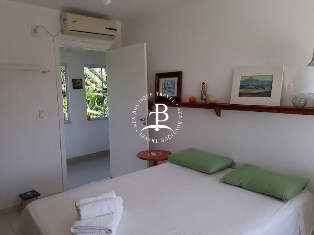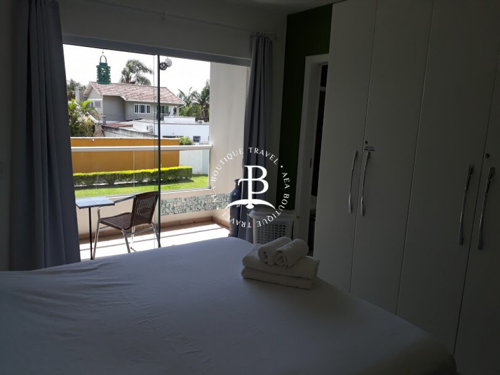 São 3 suítes e um dormitório, todos com ar condicionado, a distribuição das camas: 4 camas ‘king’ size. Um banheiro completo. Acomoda confortavelmente até 10 pessoas.