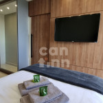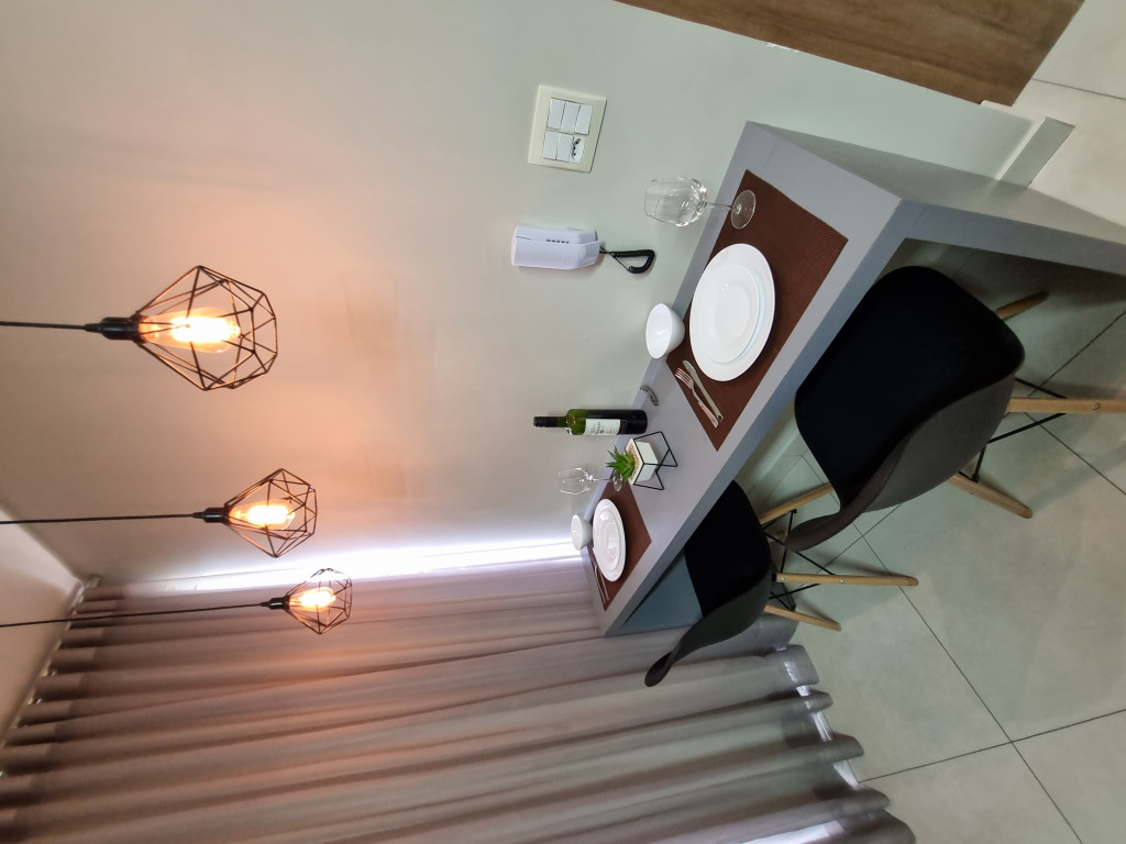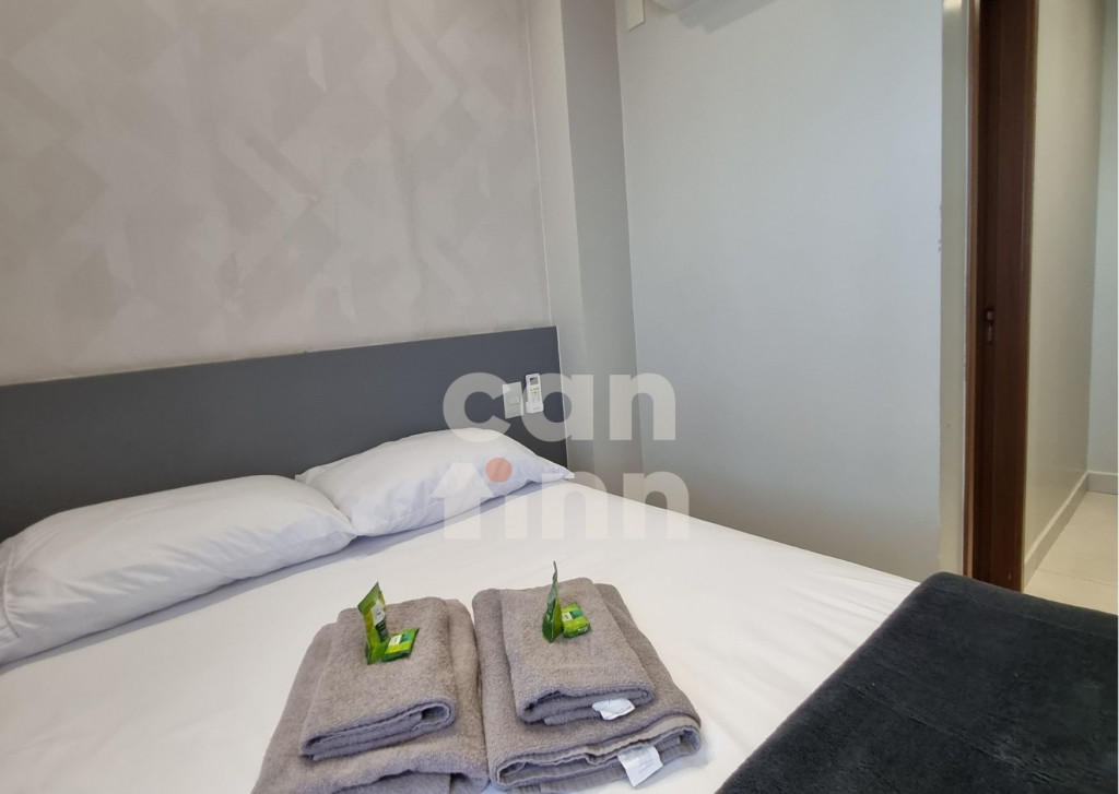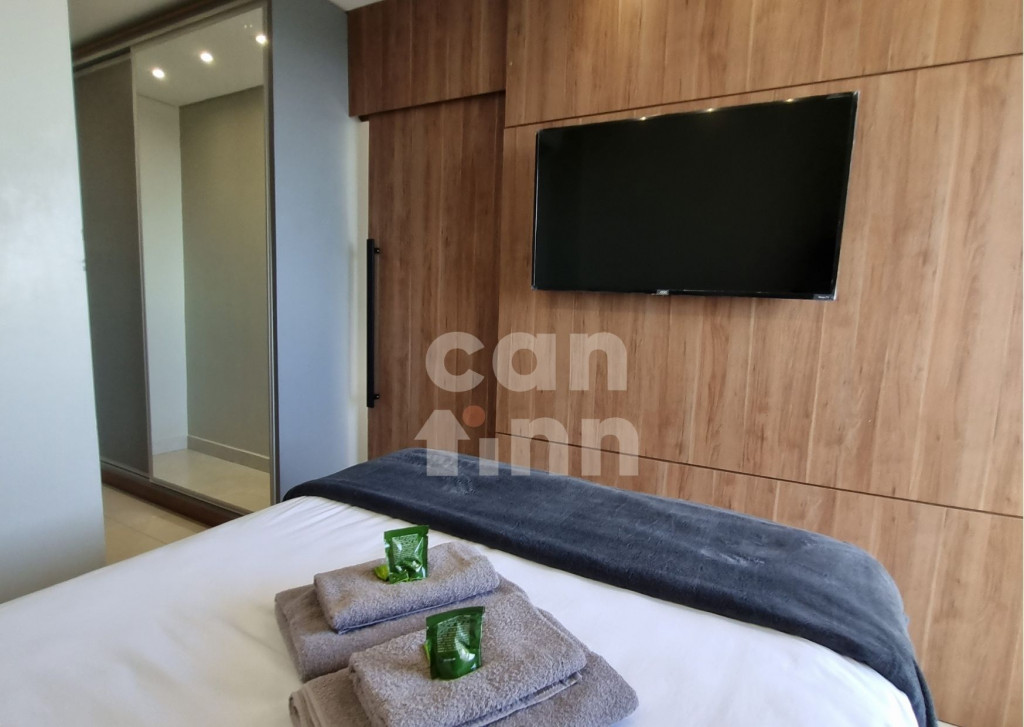 Totalmente exclusivo ao hóspede, o apto conta com uma sala com TV, ar condicionado e um confortável sofá. Cozinha repleta em armários e diversos utensílios como: pratos, taças de vinho, panelas, talheres, kit de churrasco, garrafa para café. Quarto com cama de casal, ar condicionado, roupa de cama e travesseiros. Banheiro com sabonete e papel higiênico, closet com armário e uma excelente sacada gourmet com churrasqueira a carvão, com acesso pelo quarto e pela cozinha. Áreas em comum do condomínio estão sujeitas a agendamento na portaria (Lavanderia, Piscina, Jacuzzi e Academia).