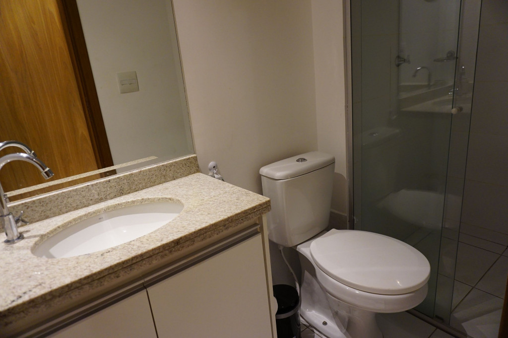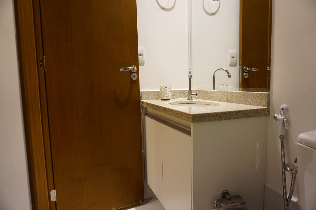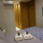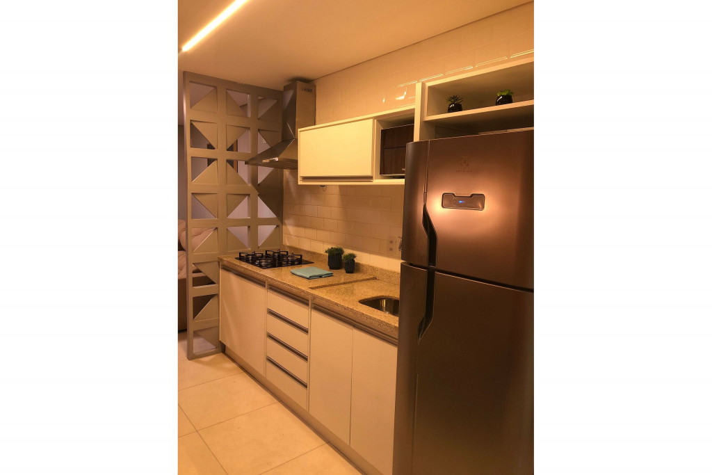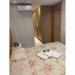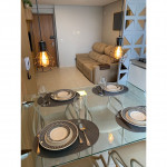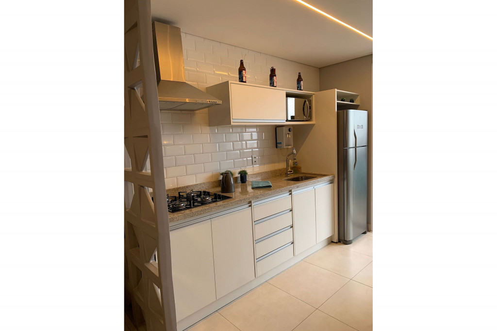 Totalmente exclusivo ao hóspede, o apto conta com uma sala com TV, ar condicionado e um confortável sofá. Cozinha repleta em armários, com mesa de jantar romântica e diversos utensílios como: pratos, taças para champanhe e vinho, panelas, talheres, kit de churrasco, garrafa para café e sanduicheira. Quarto com cama de casal, Smart TV, ar condicionado, roupa de cama e travesseiros. Banheiro com sabonete e papel higiênico, closet com armário e uma excelente sacada gourmet com churrasqueira a carvão, com acesso pelo quarto e pela cozinha. Áreas em comum do condomínio estão sujeitas a agendamento na portaria (Lavanderia, Piscina, Jacuzzi e Academia).