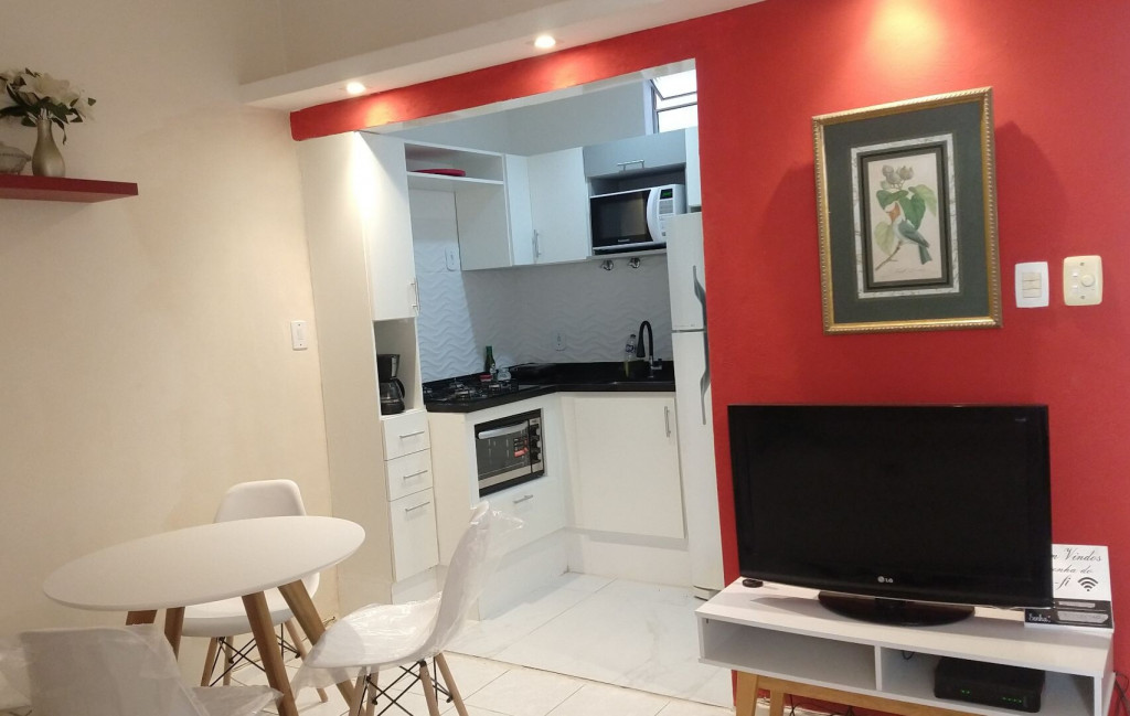 Apartamento quarto e sala de 38m2 localizado em rua tranquila e arborizada. Prédio familiar, próximo ao metrô, estaurantes, mercados e farmacias. Contém ar na sala e no quarto, máquina de lavar, micro-ondas, smart tv, wifi e todos os utensílios domésticos. Roupa de cama e banho gratuito para curtas temporadas.