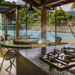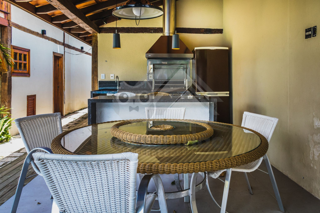 Na parte externa temos uma churrasqueira com mesas, cadeira, geladeira e uma quadra de tênis para curtir dias com os amigos e a família.