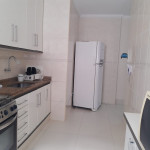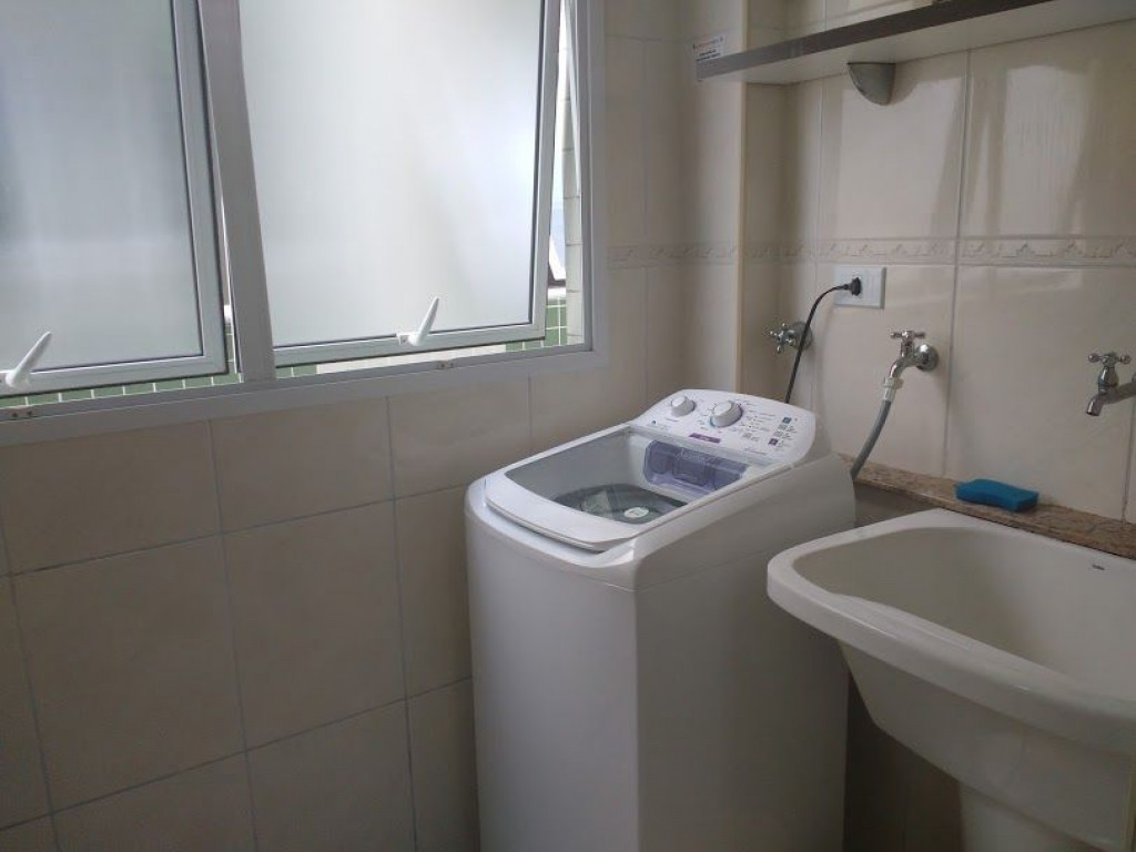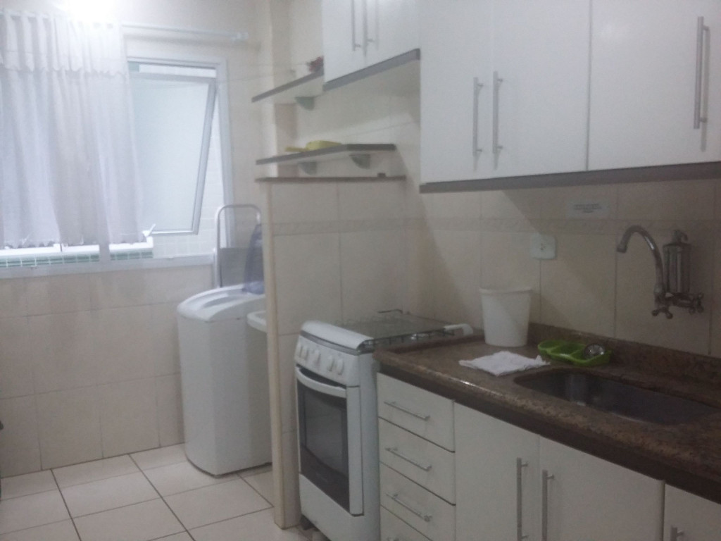 Serviço de cozinha: pratos, talheres, copos, panelas, tabua de carnes, eletroportáteis (liquidificador e sanduicheira), micro-ondasMáquina de lavar roupas