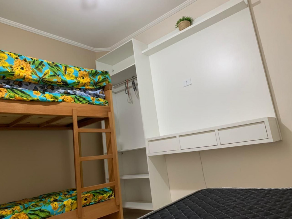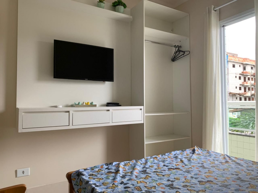 02 dormitórios com ar condicionado02 banheiros (sendo 01 na suíte)Sala com televisor 32’’ Churrasqueira na sacada Sacada frente para rua / Vista lateral parcial para a praia01 vaga de carroWi-Fi