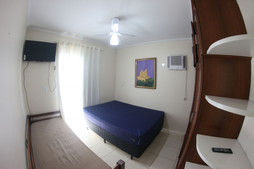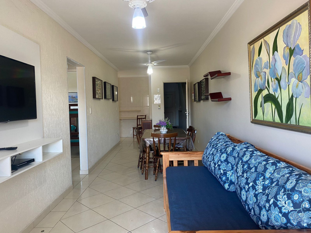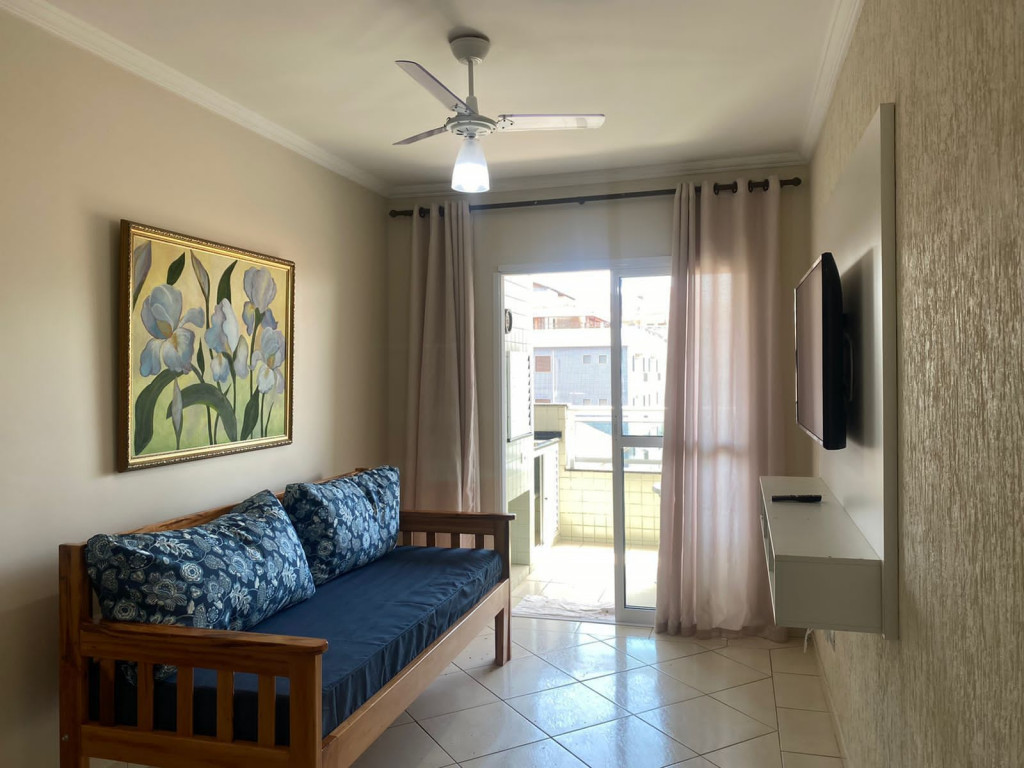 02 banheiros (sendo 01 na suíte)Sala com televisor 43’’Churrasqueira na sacada Sacada frente para rua / Vista lateral para praia02 vagas de carro porte médio (coberta/descoberta)Wi-Fi