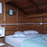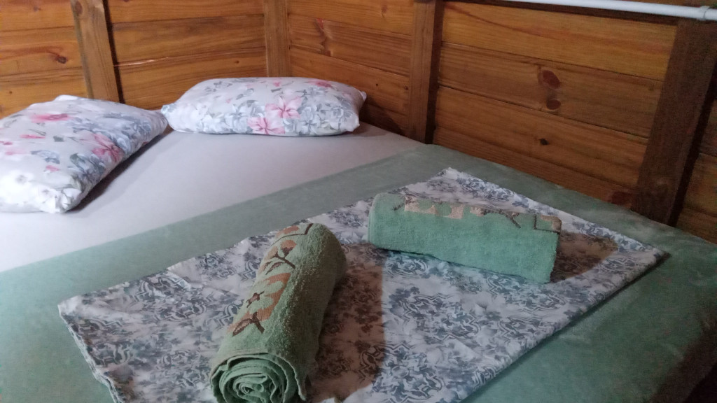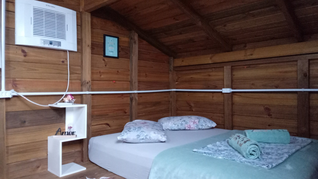 A casinha é ideal para duas pessoas, porém temos um colchonete futon que acomoda confortavelmente uma criança.