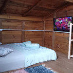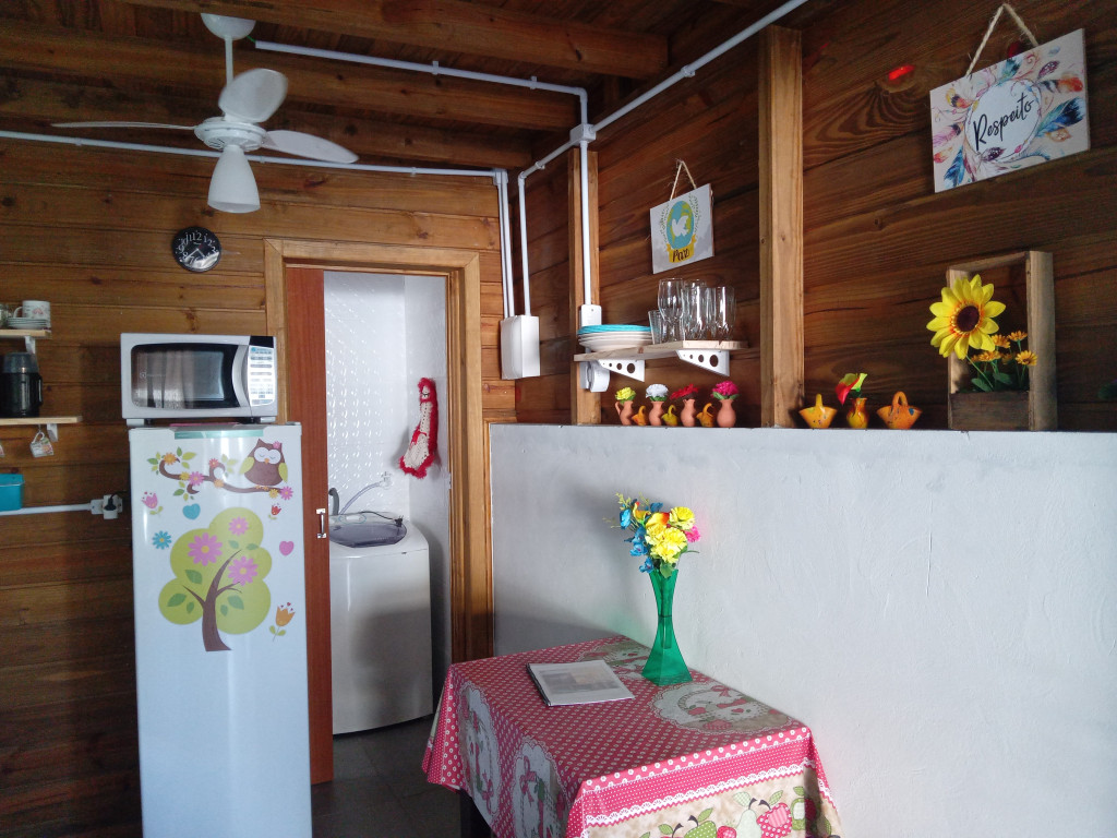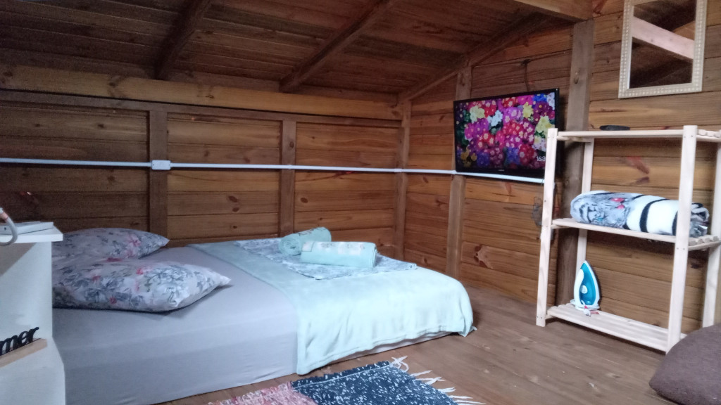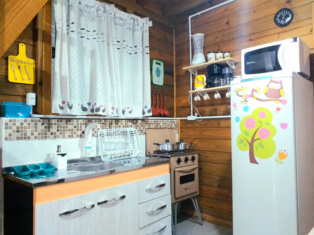 A casinha foi toda pensada para proporcionar uma estadia confortável e cômoda. Possui varanda com rede para descanço, cozinha completa com utensílios, fogão e forno a gás, microondas, chaleira elétrica e geladeira. No mezanino temos colchão de casal super confortável, prateleira rustica de madeira, cabideiro e TV 32 polegadas com chromecast. No banheiro temos uma máquina de lavar roupas para estadias mais longas. Ótima internet da operadora Vivo, o que facilita caso o hóspede precise trabalhar em home office. Disponibilizo roupas de cama, cobertores e travesseiros.