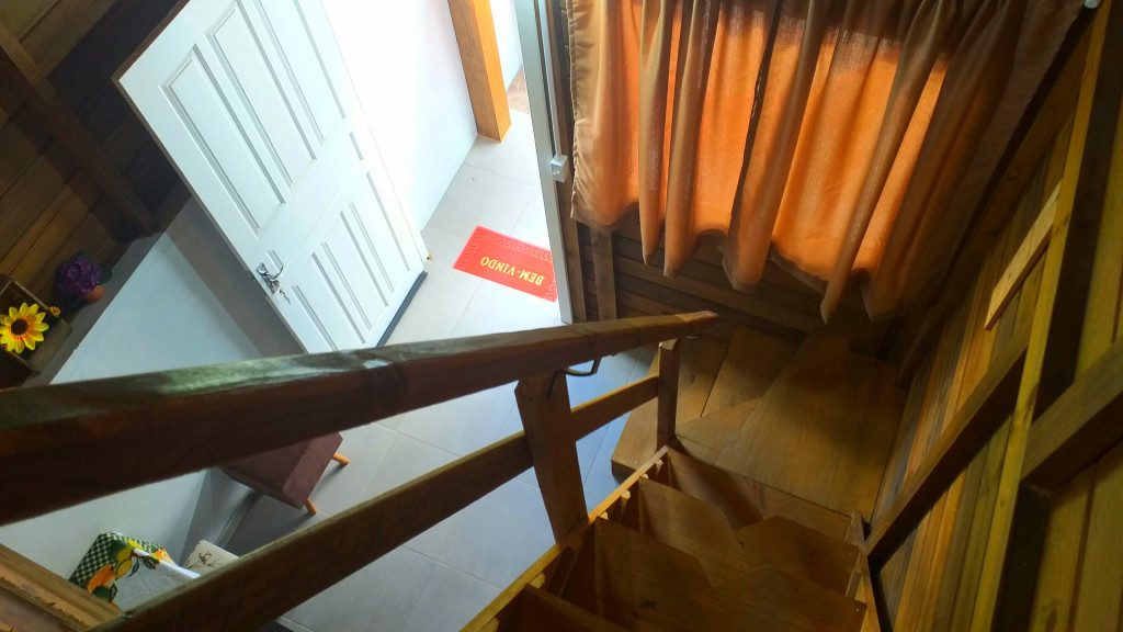 Como a escada não tem proteção, para crianças muito pequenas pode ser um risco.