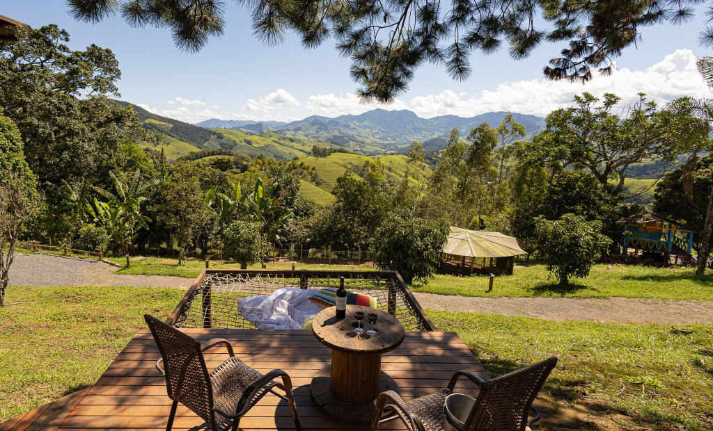 Os hóspedes podem acessar livremente casinha da árvore, um lugar bem legal para as crianças brincarem, e também um espaço para acender fogueira, com uma vista incrível.