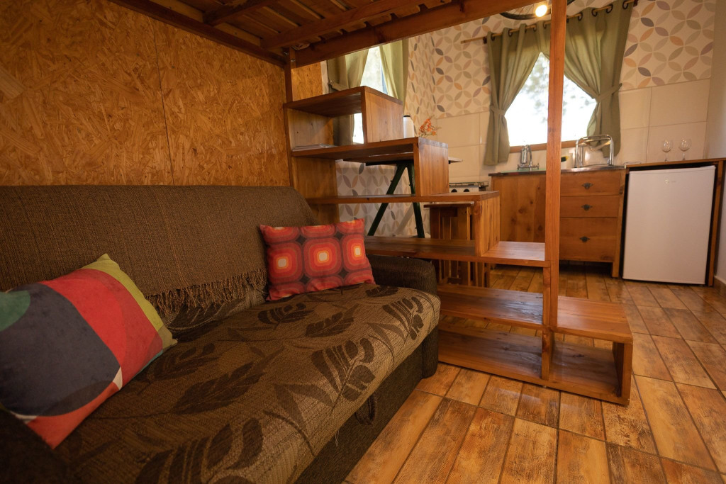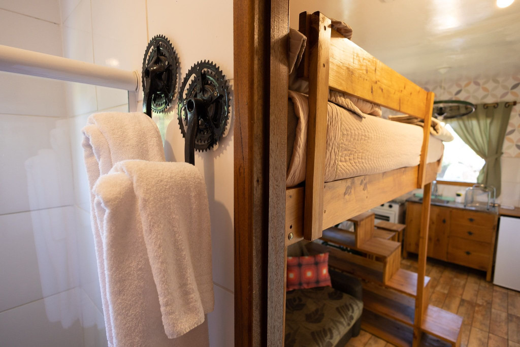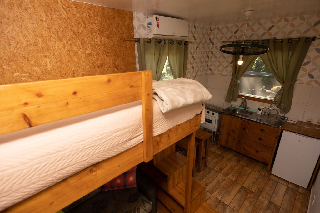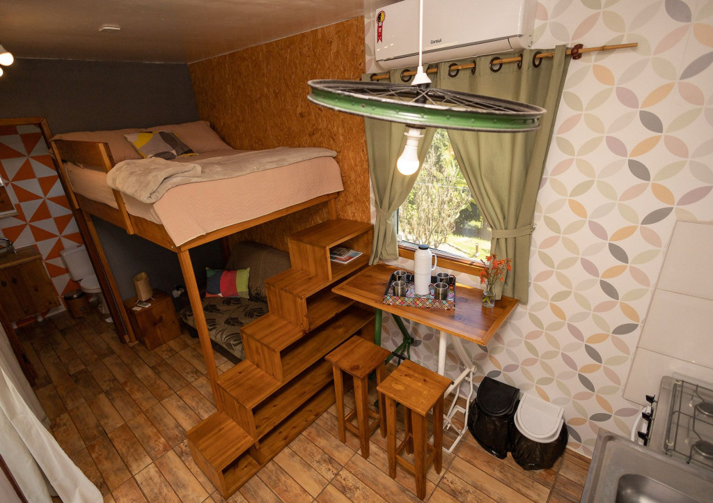 Esta Tiny House (mini casa completa) foi projetada para você descansar, cozinhar, ler, se divertir, enfim, viver de uma maneira confortável em um pequeno espaço. A cama de casal aérea permite que a área social se amplie integrando a cozinha, plenamente equipada, com a sala de estar. Sendo São Bento do Sapucaí uma cidade referência em esportes e atividades da aventura, a Tiny House foi decorada e preparada para receber, também, ciclistas e amantes da corrida de montanha.