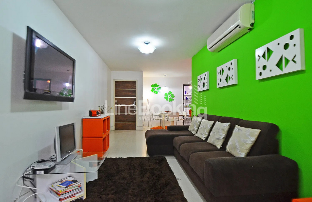 Sala de Estar: TV LCD com canais a cabo, Ar condicionado, sofá 3 lugares, poltronas.