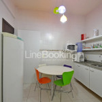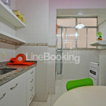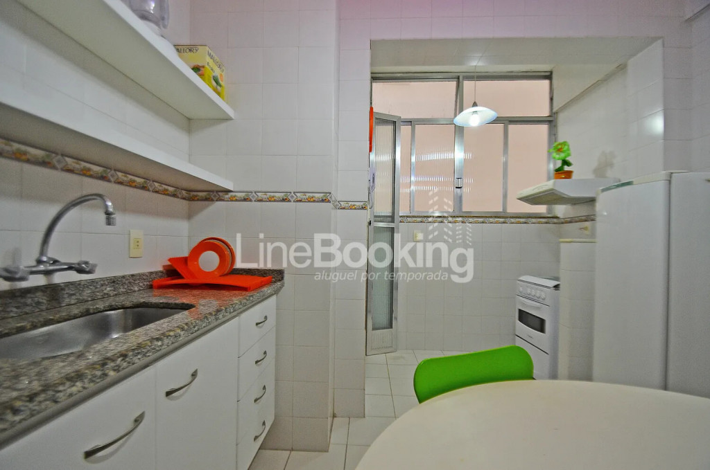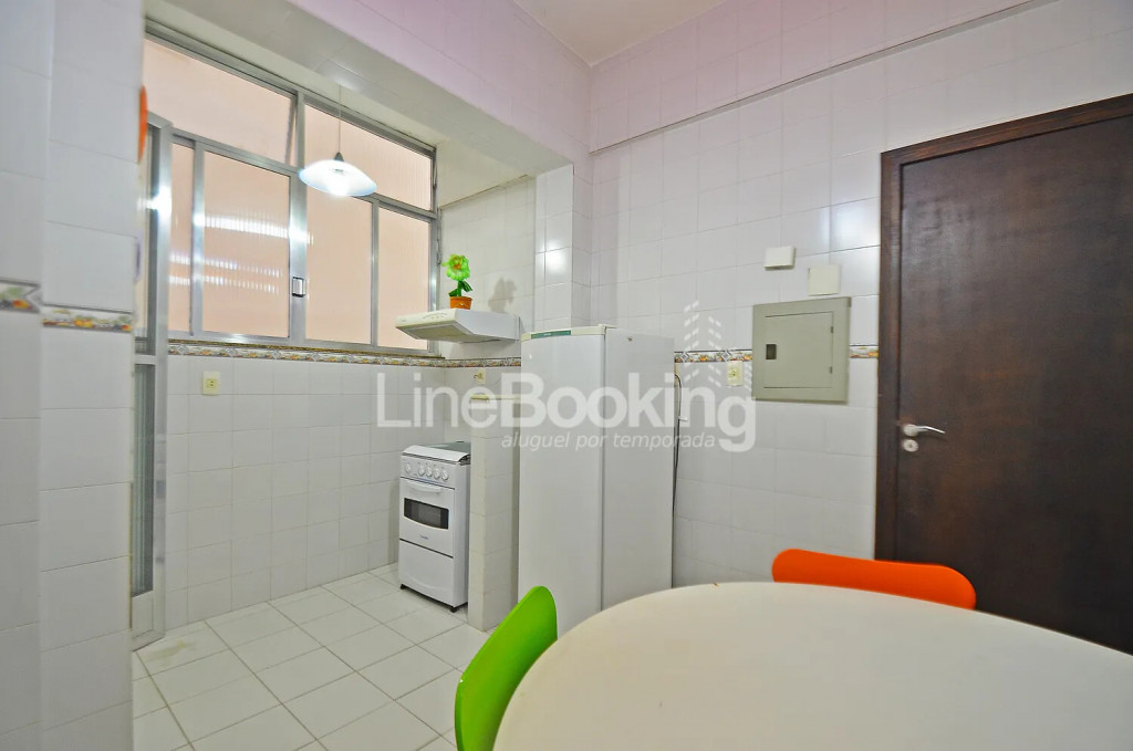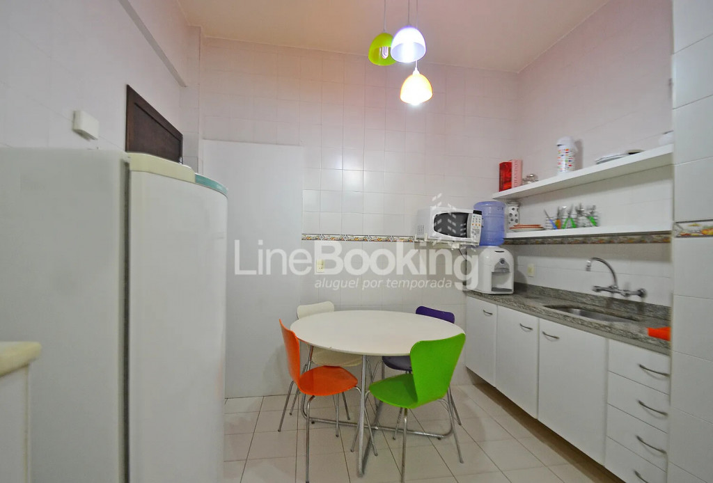 Cozinha: Mesa 4 lugares, fogão, geladeira, micro-ondas, sanduicheira, liquidificador, exaustor e demais utensílios.