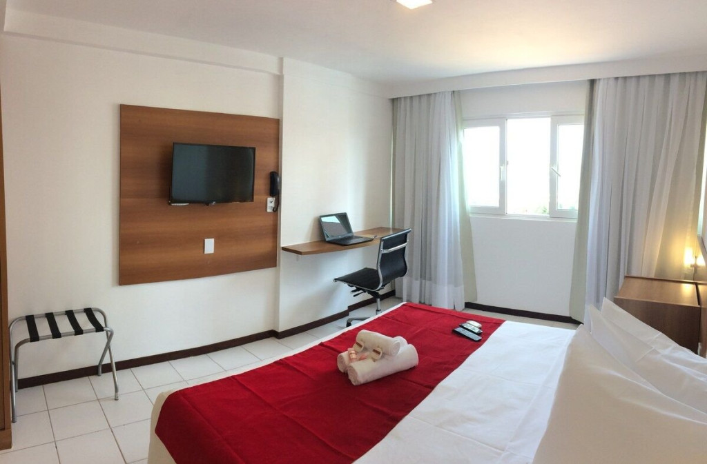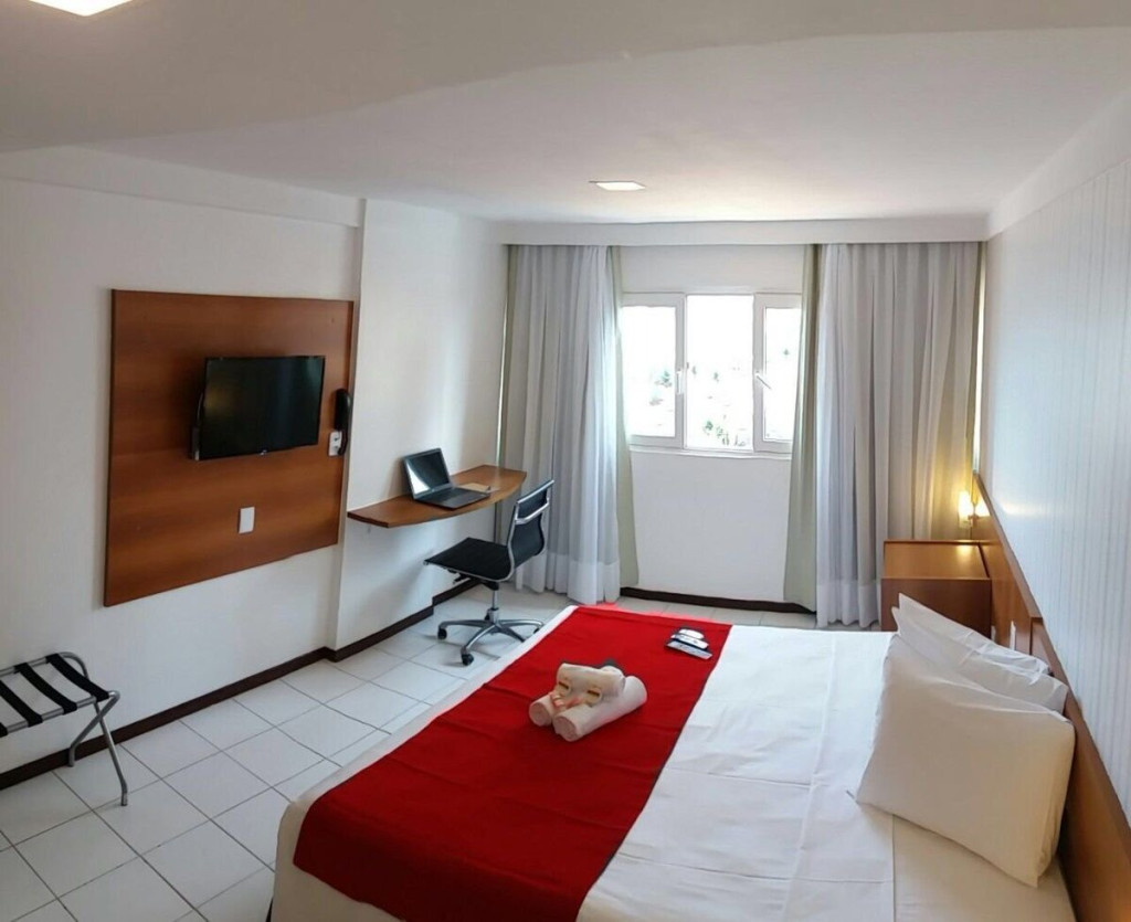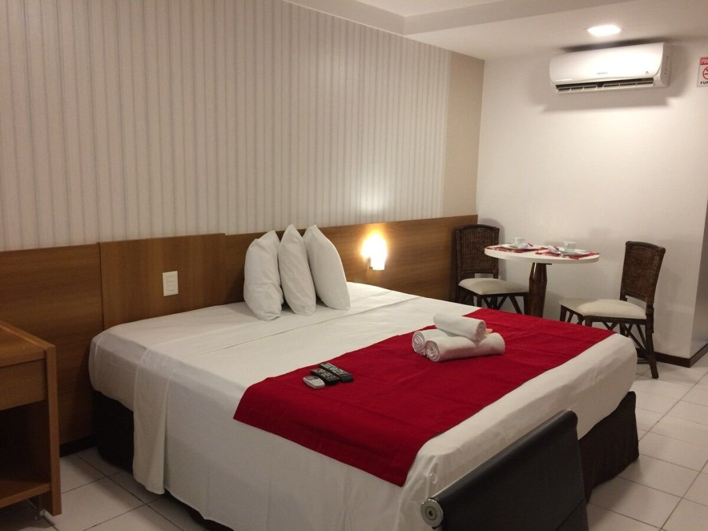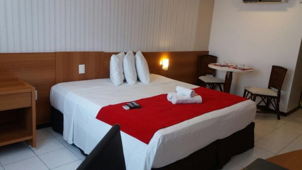 Conte com uma suíte confortável, com ar-condicionado e utensílios, além de um condomínio com piscina, restaurante e agencia de turismo. Venha se hospedar conosco e desfrutar do melhor da sua viagem com toda comodidade que você precisa.