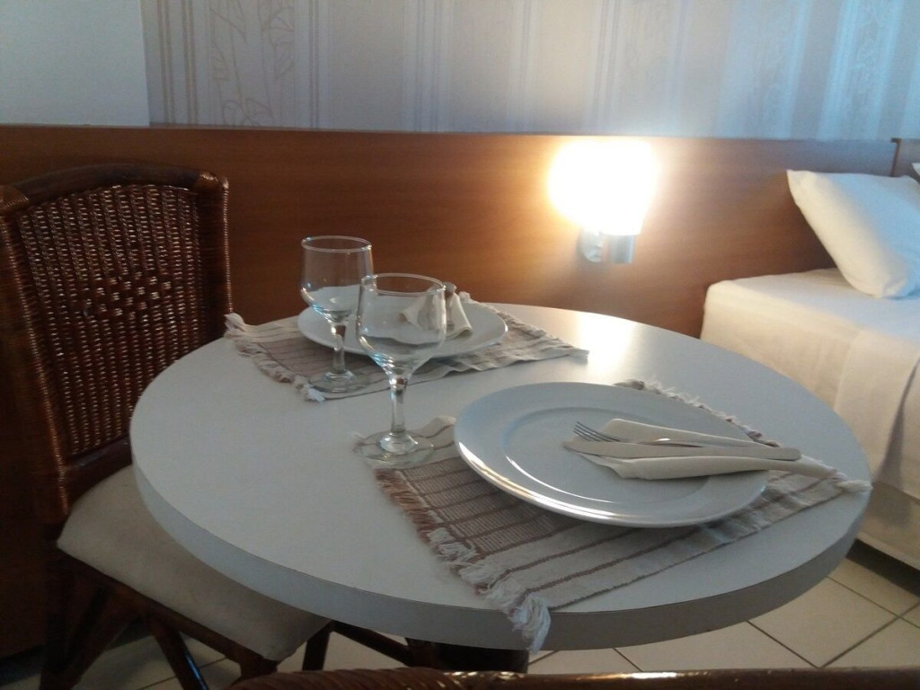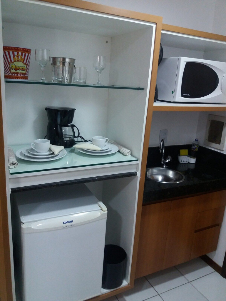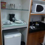 -Equipada com wi-fi, ar condicionado, televisão, micro-ondas, frigobar, cafeteira, liquidificador, torradeira, louças e talheres para refeições e serviços de quarto com trocas de toalhas.