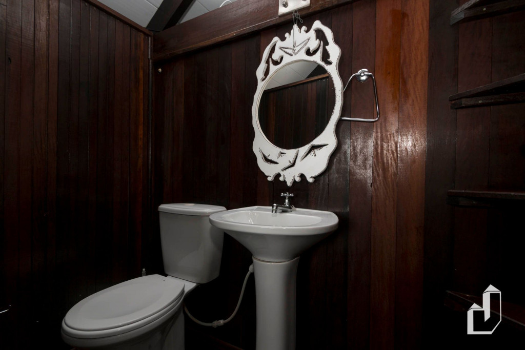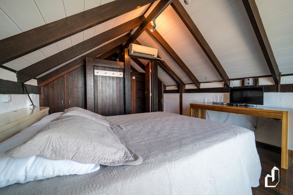 01 dormitório de casal queen com TV, ar-condicionado e lavabo;