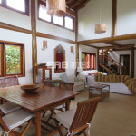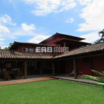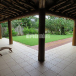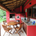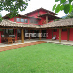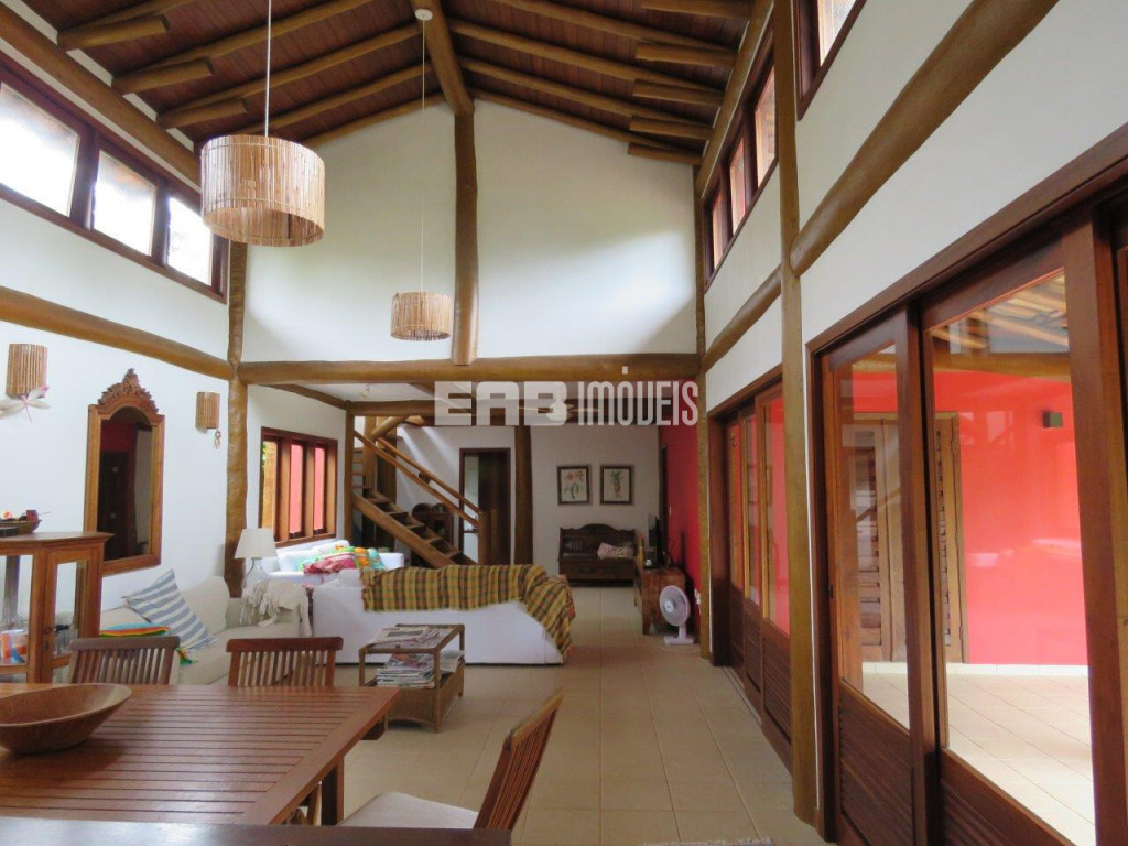 Belíssima casa, em frente à área verde, com toras de eucalipto e muitas aberturas de vidro, que iluminam os ambientes e trazem as cores da natureza para dentro.