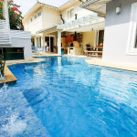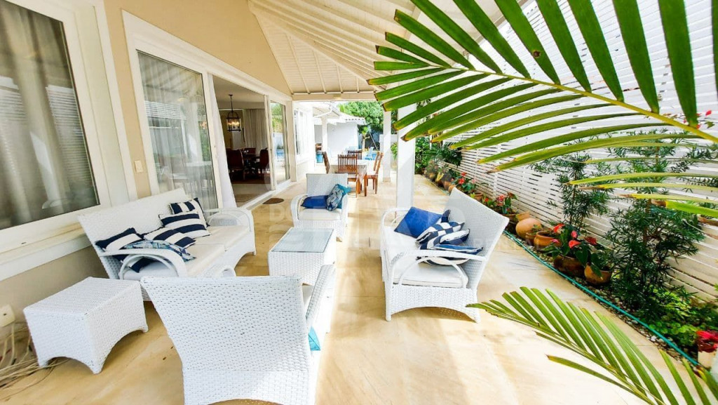 Piscina, churrasqueira, sauna, uma varanda e um jardim que faz da casa um verdadeiro privilégio.