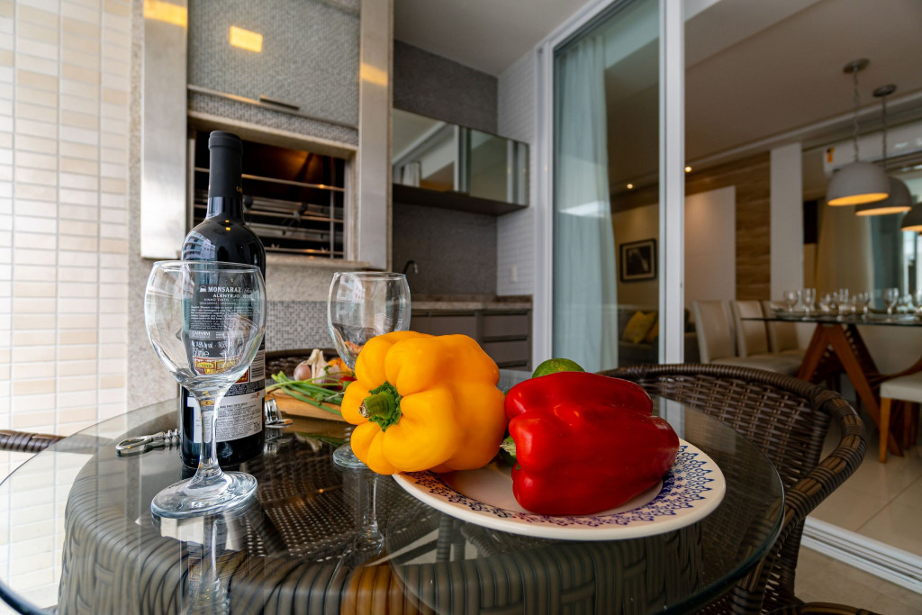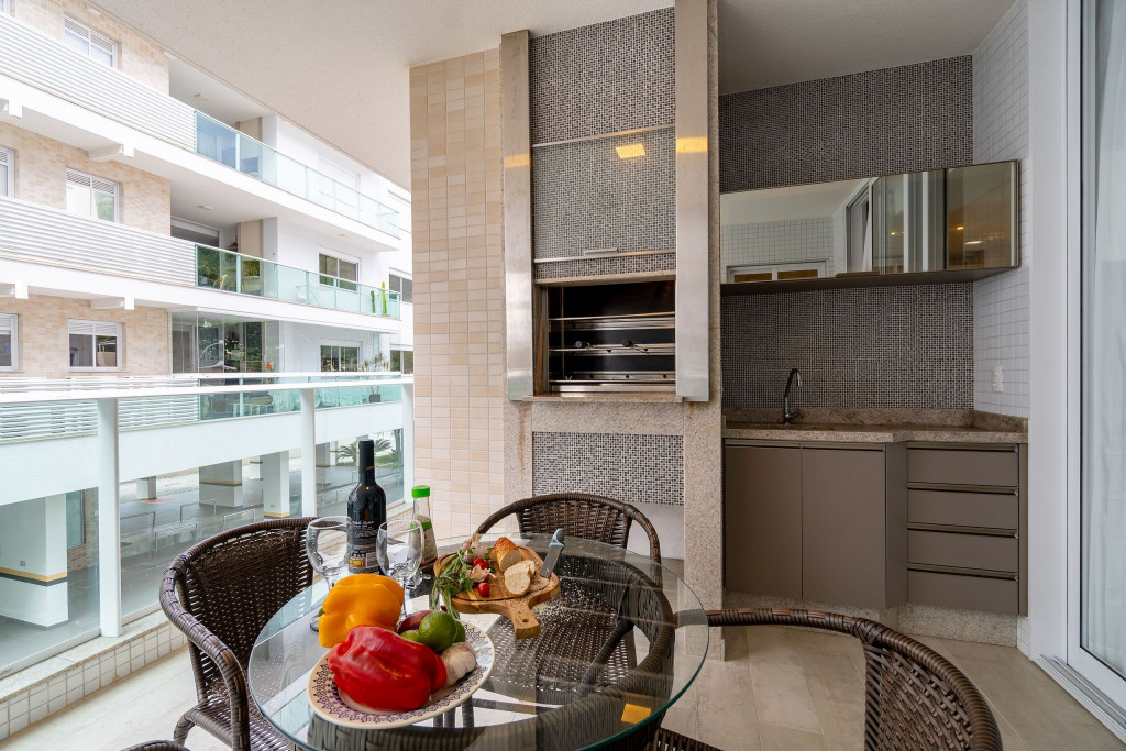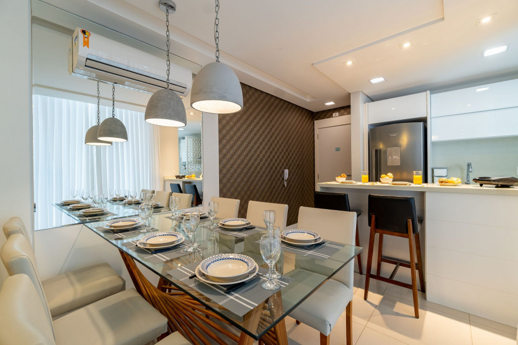 O apartamento 203-B do Residencial Varandas do Atlântico acomoda até 6 pessoas (capacidade máxima incluindo crianças de qualquer idade) em 3 quartos, sendo uma suíte com cama de casal, quarto com cama de casal e o outro com duas camas de solteiro. Todos dispõem de ar-condicionado. O imóvel possui cozinha completa e equipada e área de serviço, sala de estar e jantar, banheiro social e sacada com churrasqueira e vista interna. (Solicite inventário completo para nossa equipe).Para comodidade de nossos hóspedes, também oferecemos:- Wi-Fi com excelente velocidade