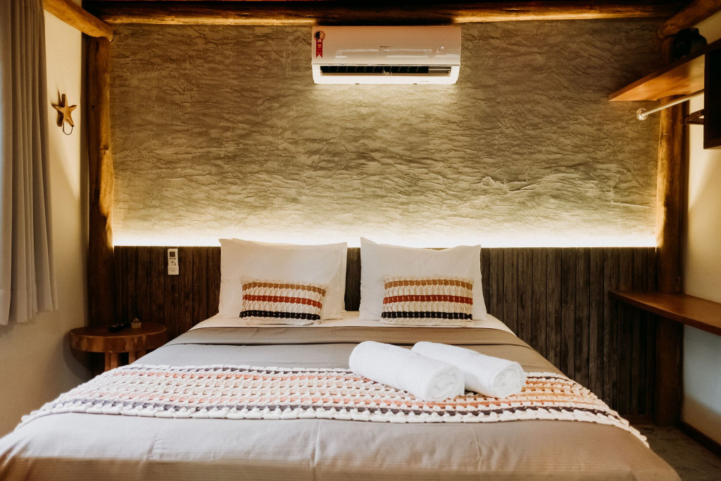 Cada unidade recebeu o nome de uma das praias da região e este anúncio é referente ao Bangalô nº 3, nomeado de Toque.