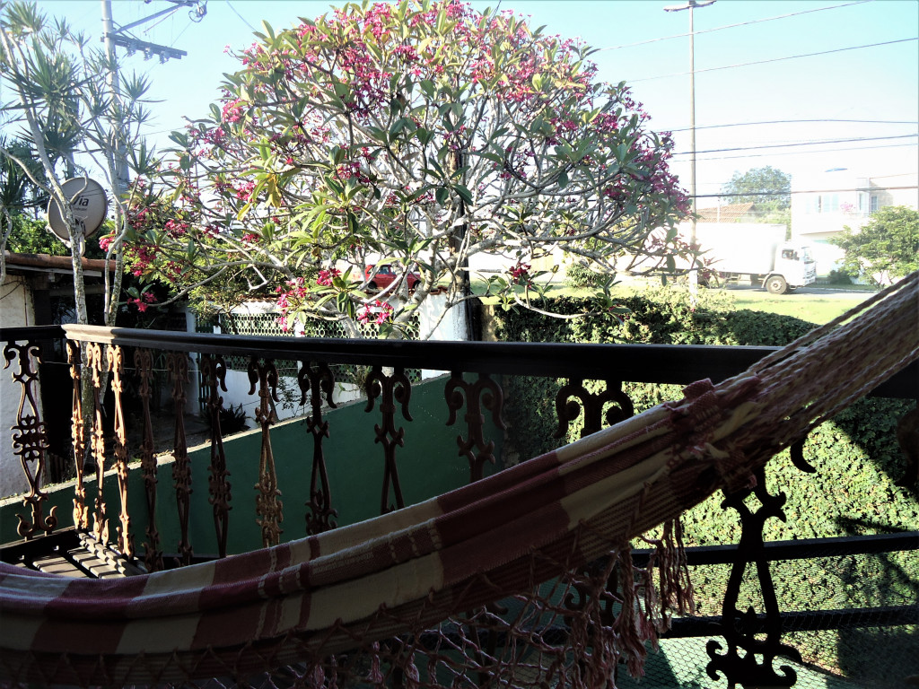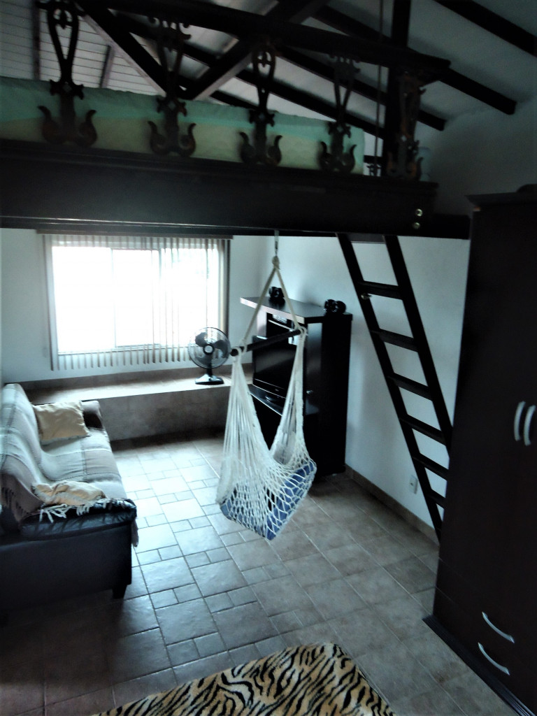 Casa tipo chalé colonial, com espaços amplos e luminosos, bem distribuídos, arejados, asseados, sem luxo e sem mofo. Possui na entrada um terraço para churrasco, copa-cozinha com utensílios, loft com ambientes para sala, dormitório e sacada privativa, lindo banheiro e área de serviço com varanda e deck.