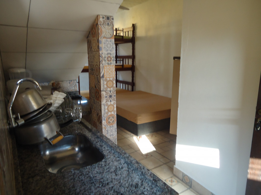 Casa independente tipo kitchenette, em estilo colonial, arejada, asseada, sem luxo e sem mofo, com espaços bem distribuídos, iluminados, sendo terraço coberto, cozinha tipo americana com utensílios, dormitório e banheiro.